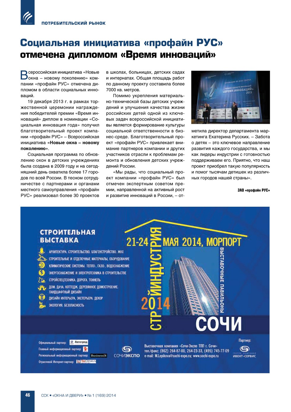 Всероссийская инициатива «Новые окна – новому поколению» компании «профайн РУС» отмечена дипломом в области социальных инноваций. |