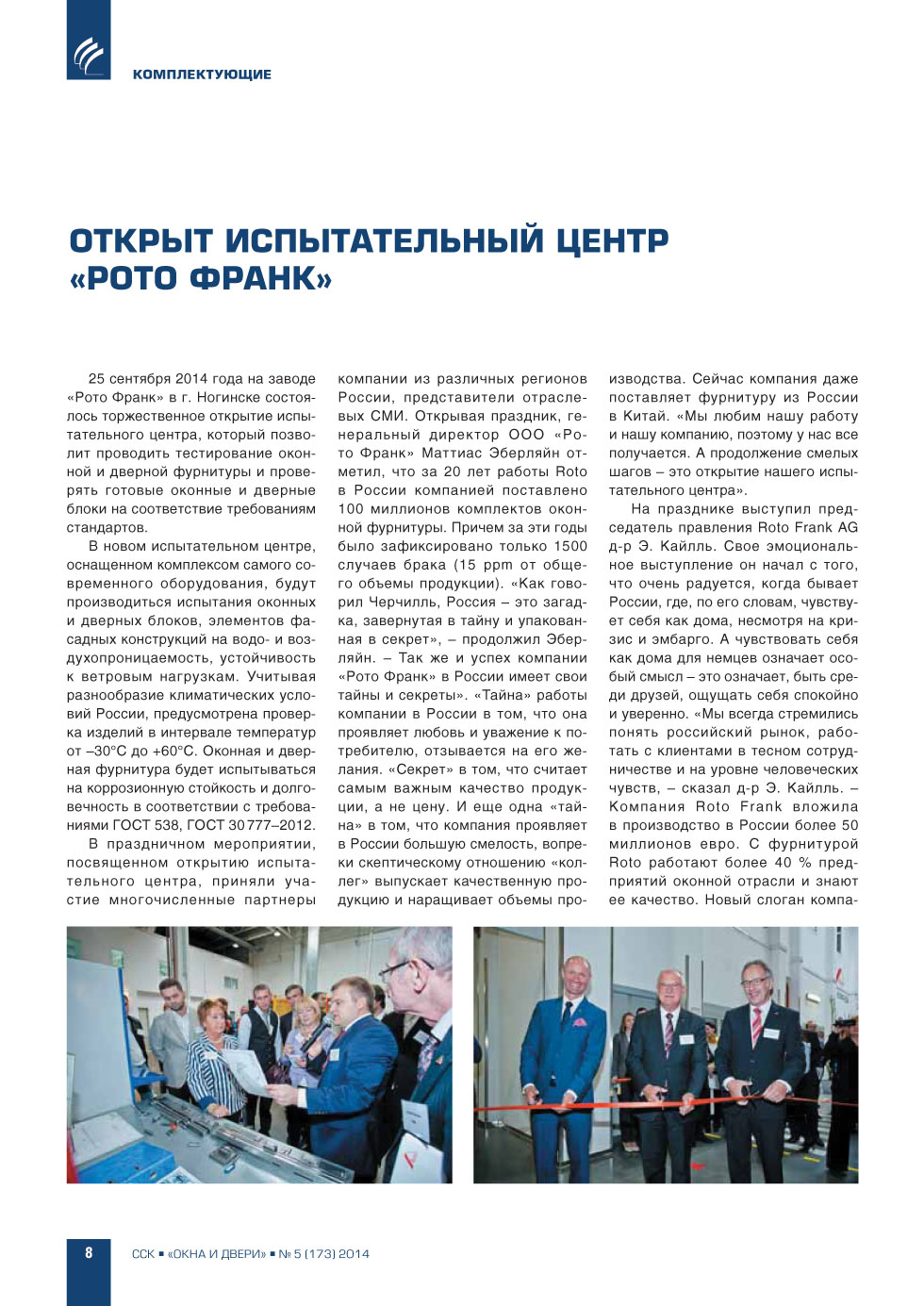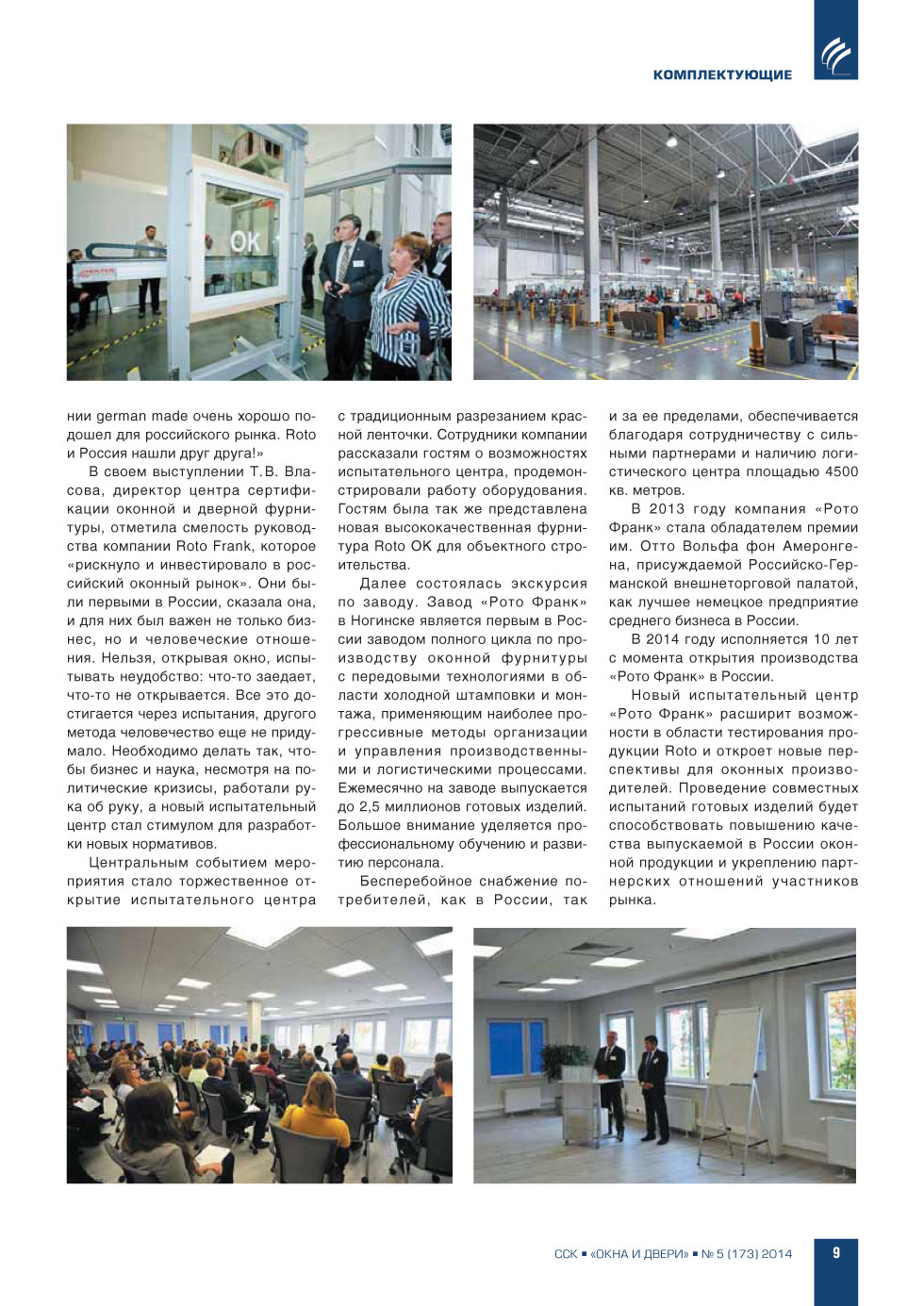 25 сентября 2014 года на заводе «Рото Франк» в г. Ногинске состоялось торжественное открытие испытательного центра, который позволит проводить тестирование оконной и дверной фурнитуры и проверять готовые оконные и дверные блоки на соответствие требованиям... |