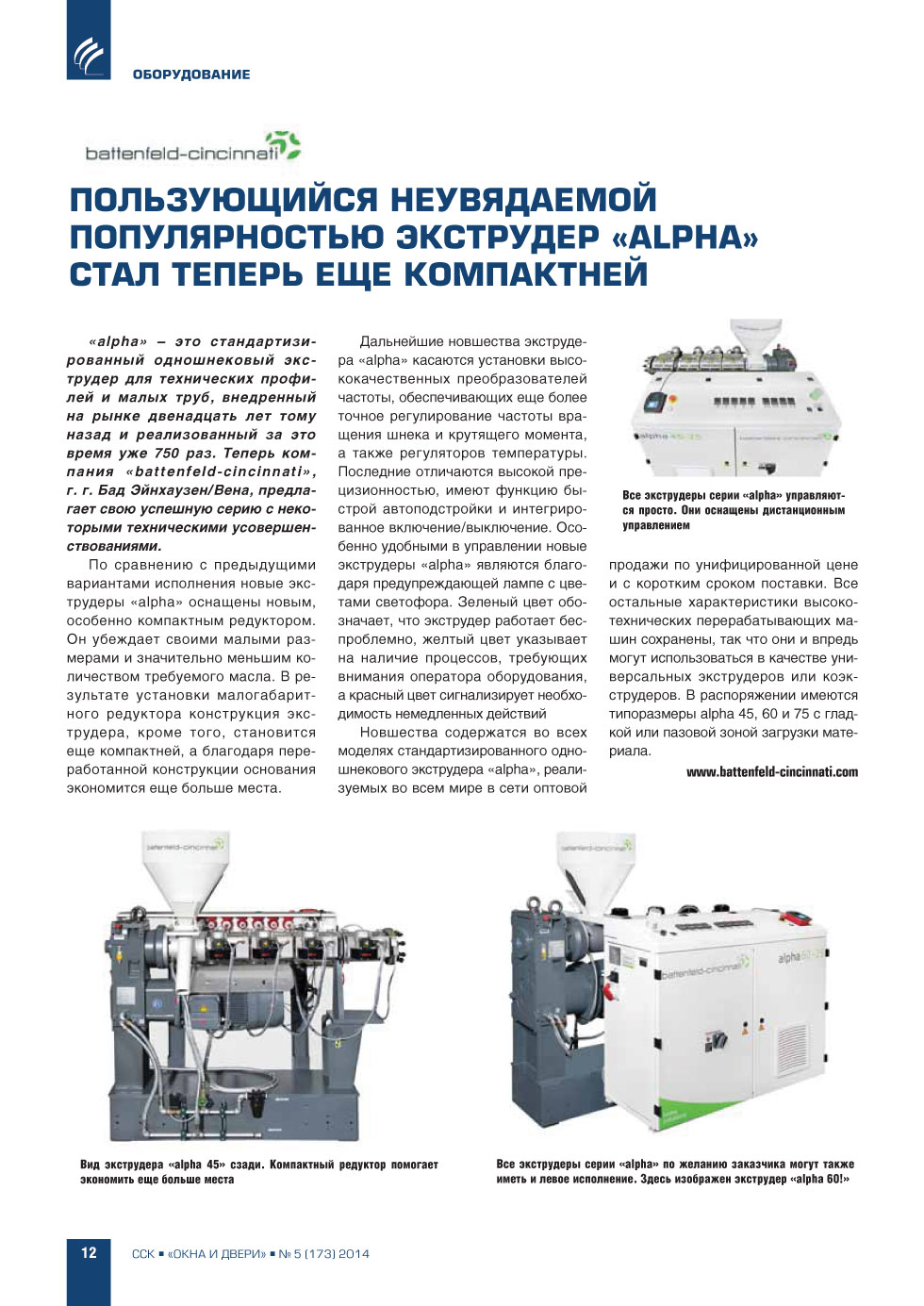 | battenfeld-cincinnati. Пользующийся неувядаемой популярностью экструдер «Alpha» стал еще компактней | ...12 |