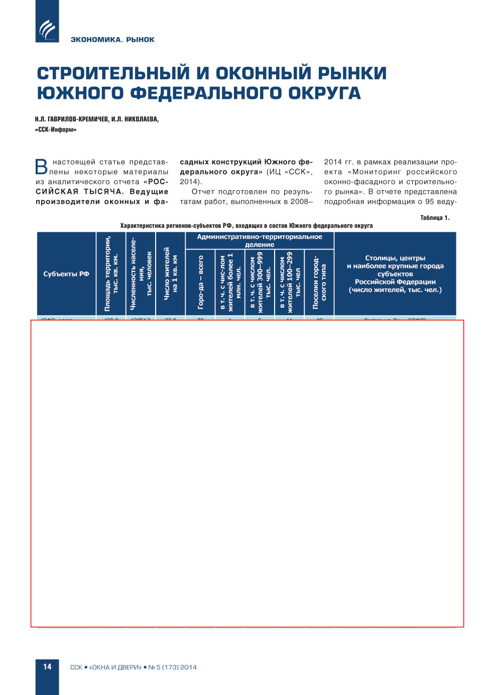 | Н.Л. Гаврилов-Кремичев, И.Л. Николаева («ССК-Информ»). Строительный и оконные рынки Южного федерального округа | ...14 |