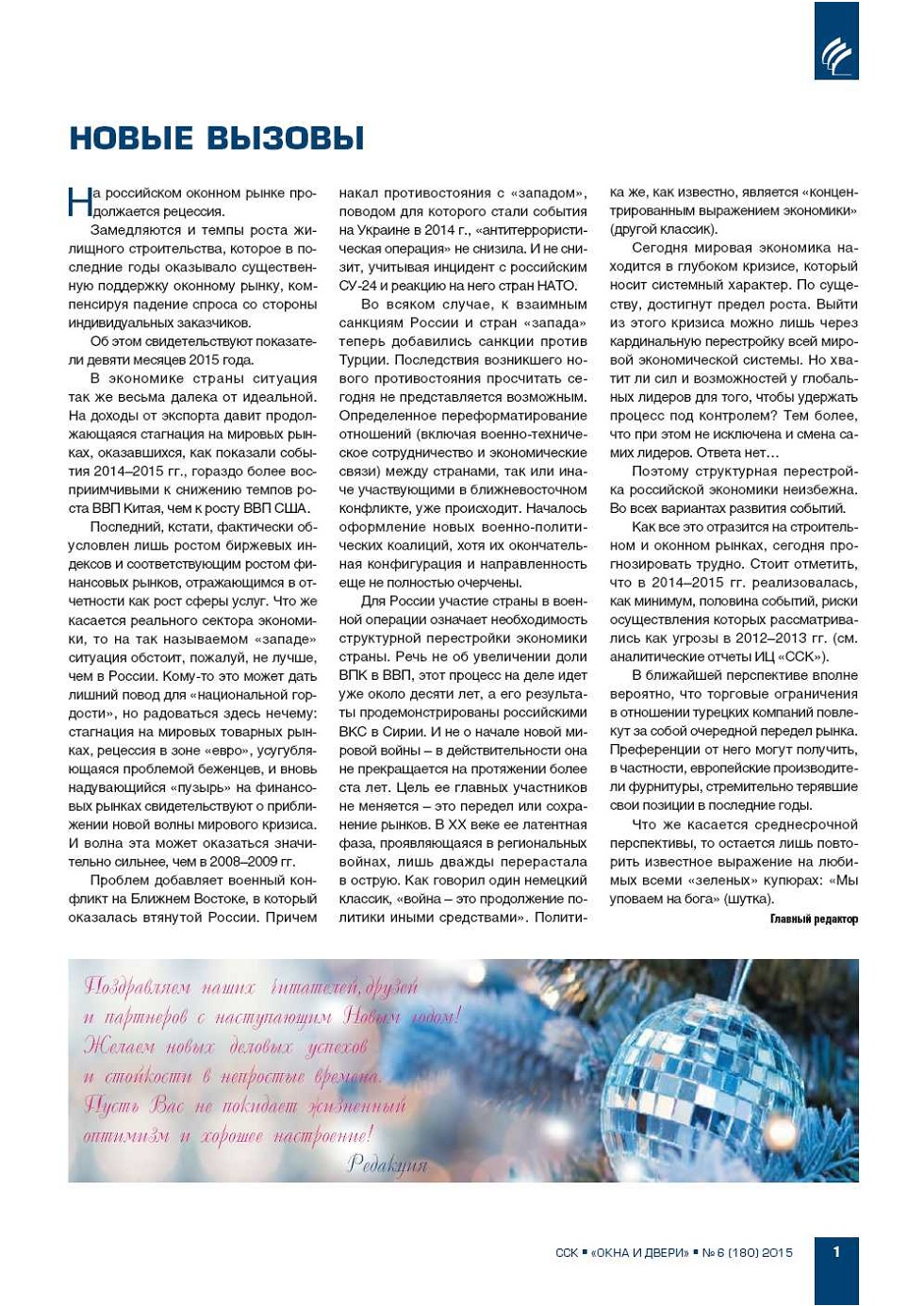 От редакции. Новые вызовы