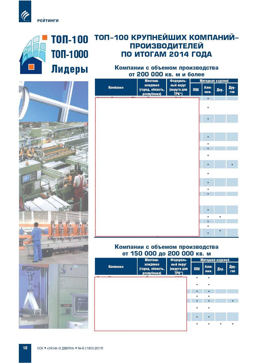 | «Троевластие». Рейтинги ТОП-10, ТОП-20 крупнейших компаний-производителей системных оконных и дверных ПВХ-профилей по итогам 2014 года | ...4 |