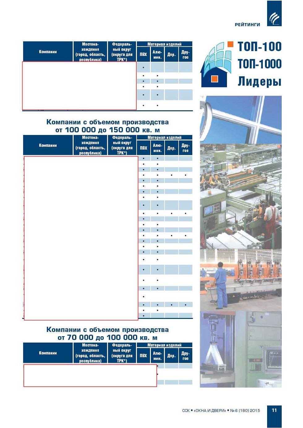 | Рейтинг ТОП-100 крупнейших компаний-производителей оконных блоков и сборных элементов других светопрозрачных строительных конструкций (изделий) в России по итогам 2014 года |