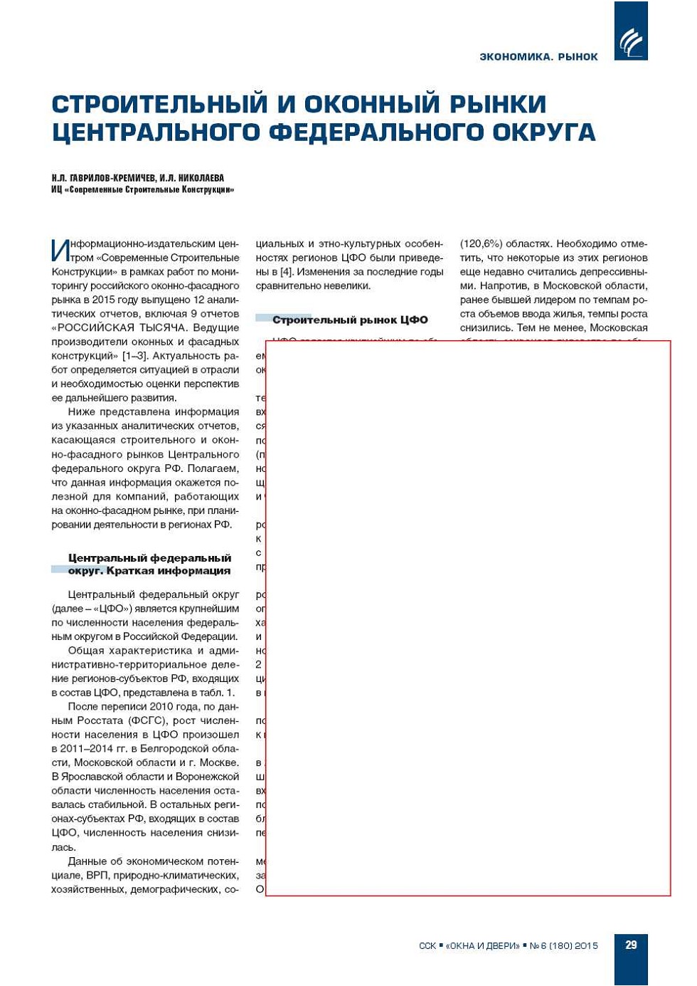 | Н.Л. Гаврилов-Кремичев, И.Л. Николаева (ИЦ «ССК»). Строительный и оконный рынки Центрального федерального округа | ...29 |
