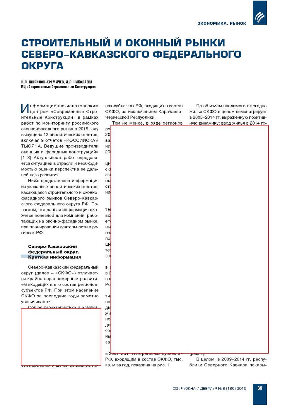 | Н.Л. Гаврилов-Кремичев, И.Л. Николаева (ИЦ «ССК»). Строительный и оконный рынки Северо-Кавказского федерального округа | ...39 |