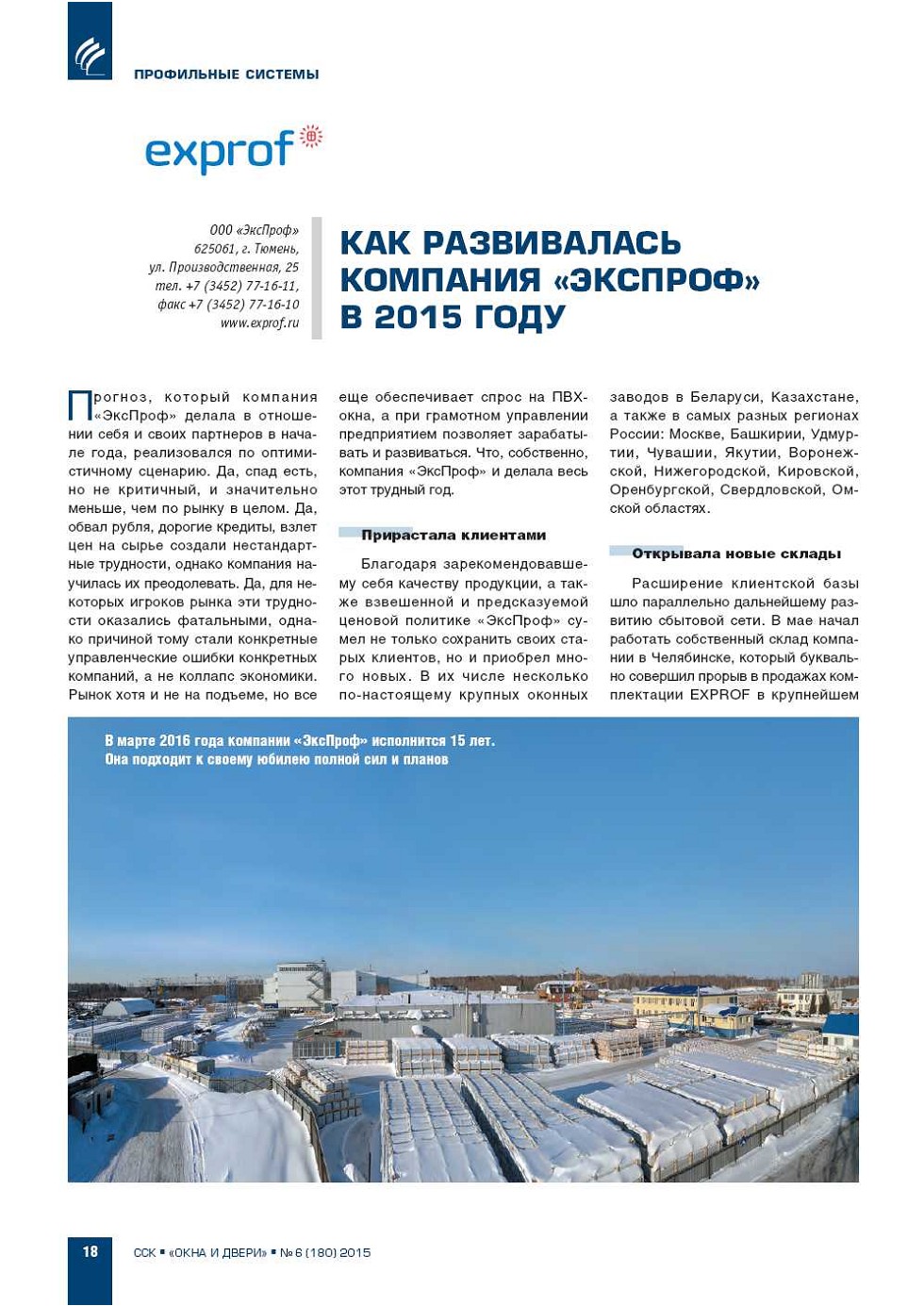 | Как развивалась компания «ЭксПроф» в 2015 году | ...18 |