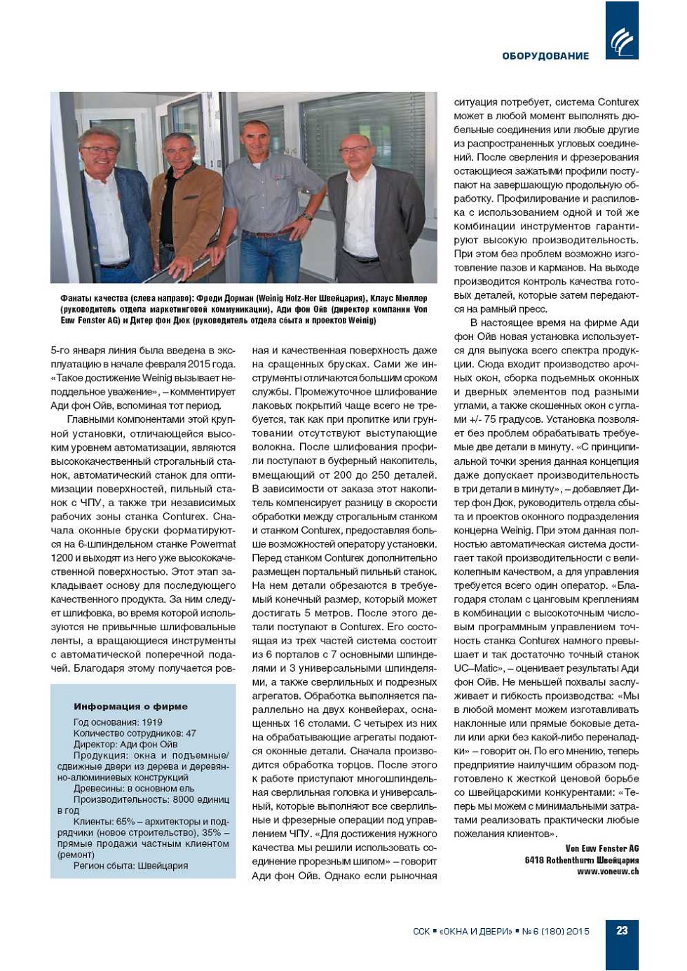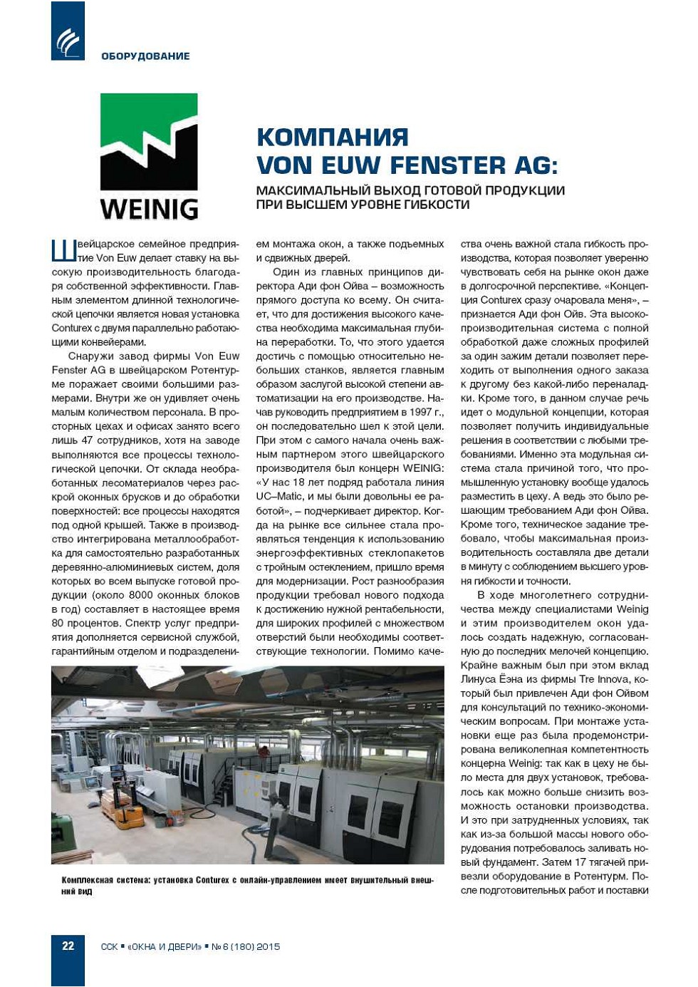 | Weinig. Компания Von Euw Fenster AG: максимальный выход готовой продукции при высшем уровне гибкости | ...22 |