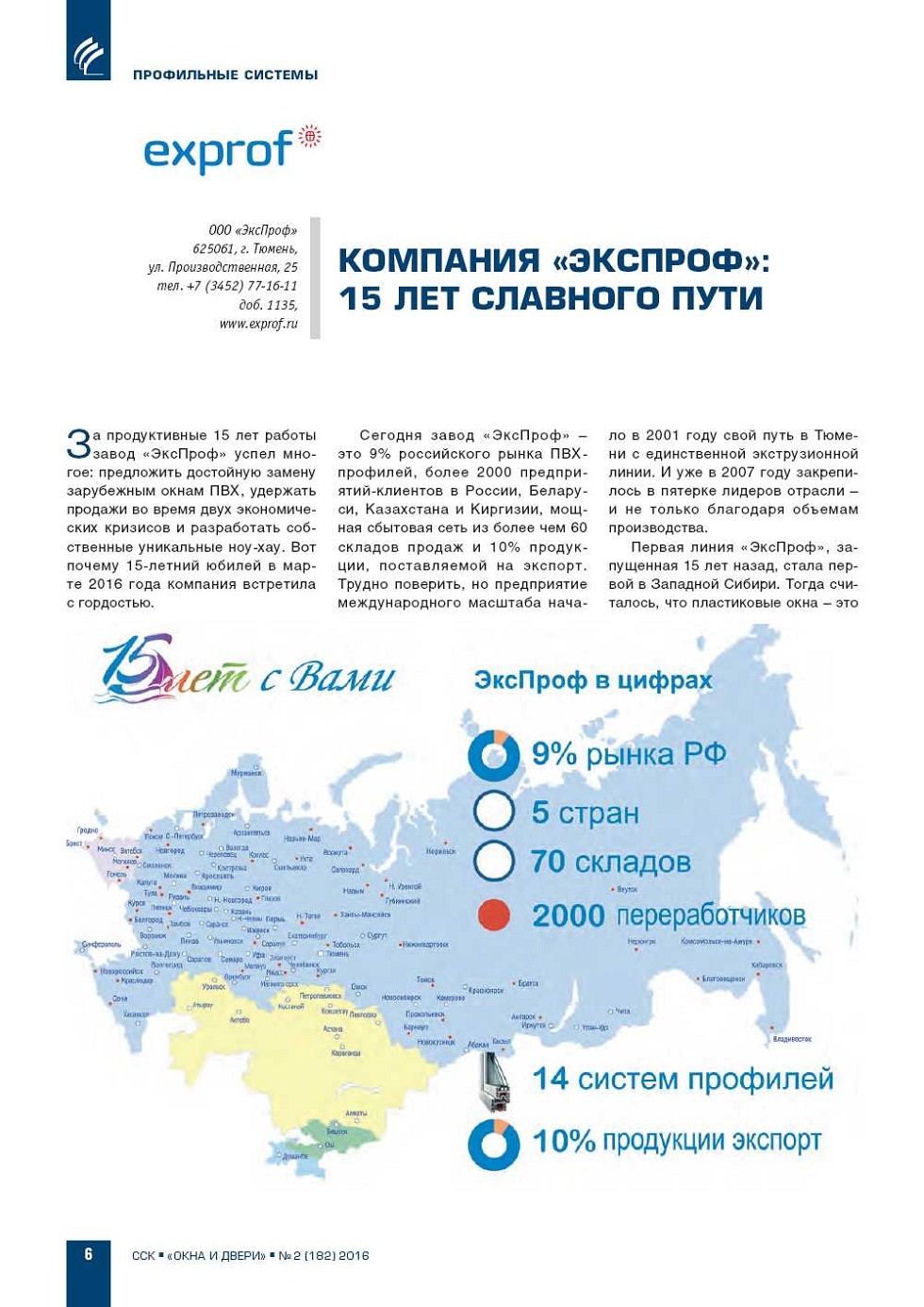 За продуктивные 15 лет работы завод «ЭксПроф» успел многое: предложить достойную замену зарубежным окнам ПВХ, удержать продажи во время двух экономических кризисов и разработать собственные уникальные ноухау. Вот почему 15летний юбилей в марте 2016 года... |