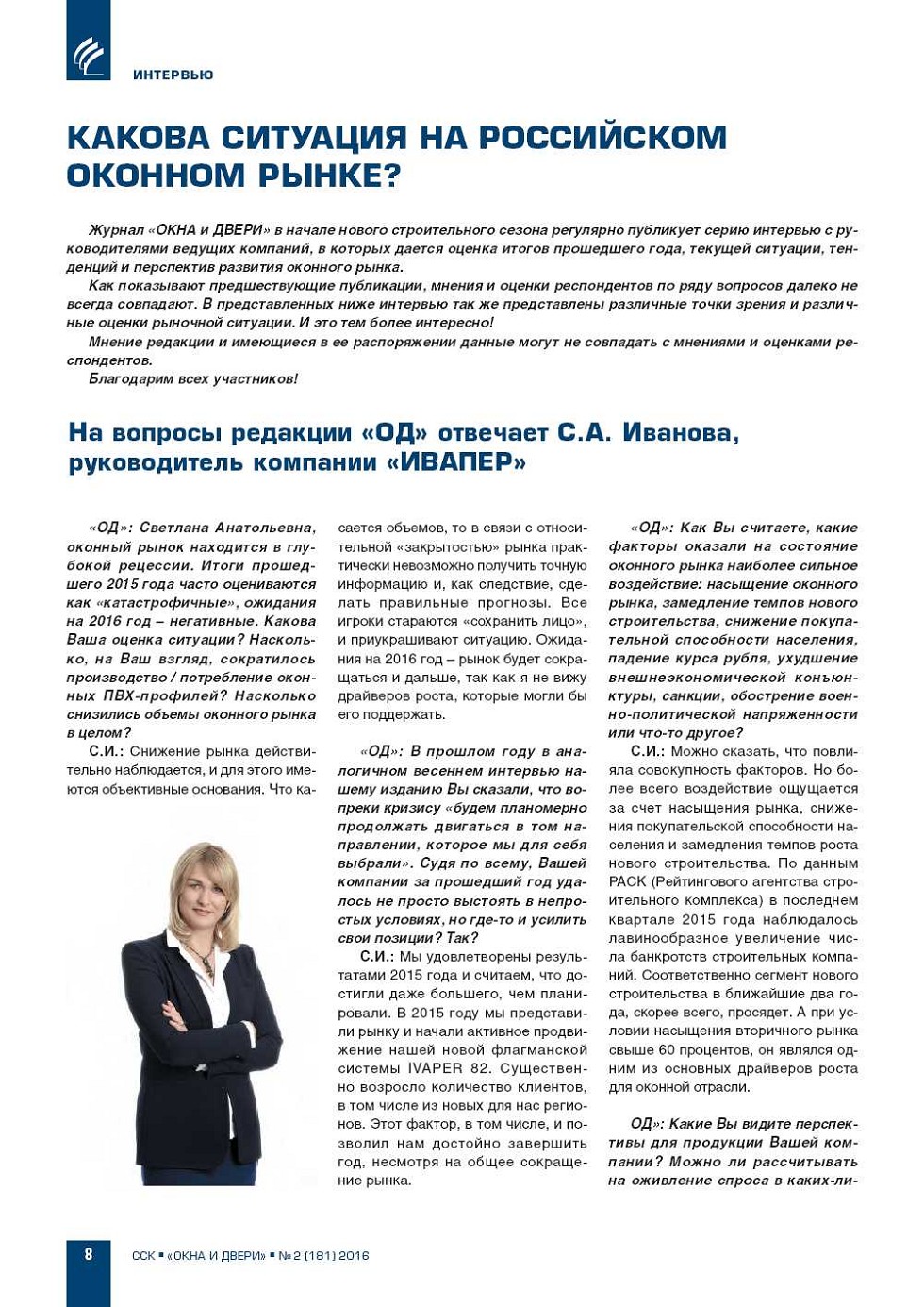 На вопросы редакции журнала «Окна и Двери» отвечают: