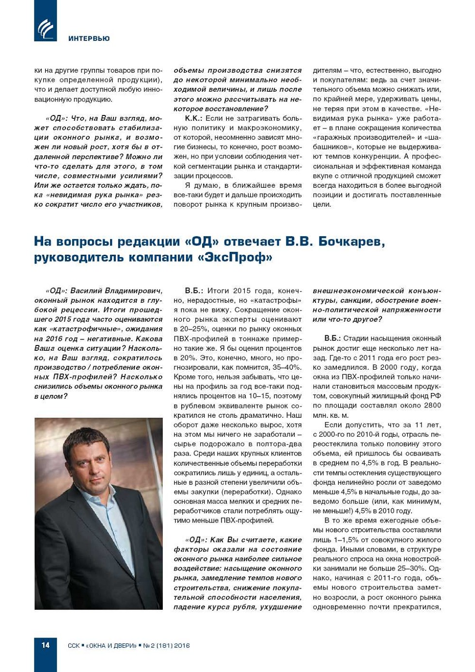«ОД»:Российский оконный рынок находится в глубокой рецессии. Итоги прошедшего 2015 года часто оцениваются как «катастрофичные», ожидания на 2016 год – негативные. Какова Ваша оценка ситуации? Насколько, на Ваш взгляд, сократились объемы продаж / потребления... |