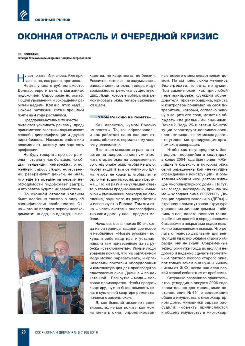 В.Е.Пригожин (МОЗП). Оконная отрасль и очередной