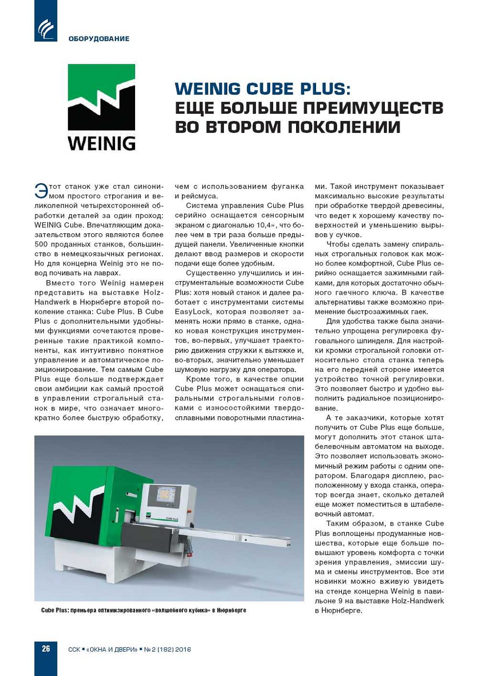 Этот станок уже стал синонимом простого строгания и великолепной четырехсторонней обработки деталей за один проход: WEINIG Cube. Впечатляющим доказательством этого являются более 500 проданных станков, большинство в немецкоязычных регионах. Но для концерна... |