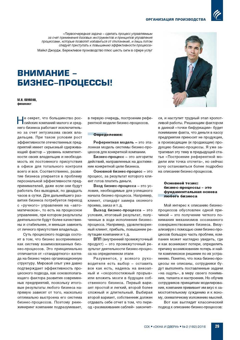 М.Н. Киямов. Внимание – бизнес-процессы!