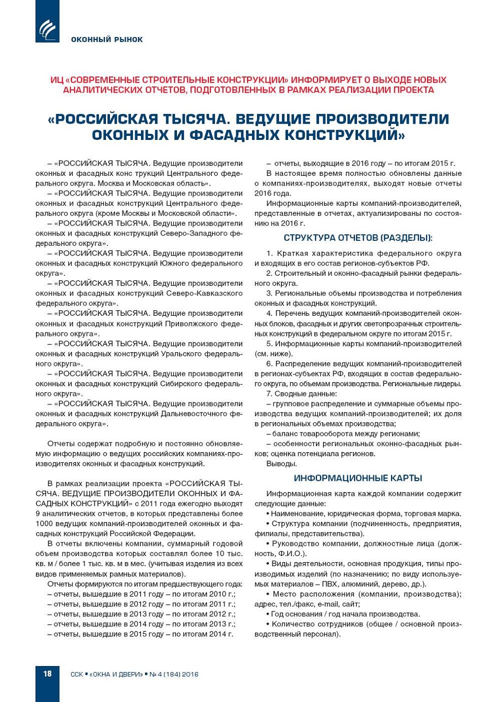 Новые аналитические отчеты «Российская тысяча. Ведущие производители оконных и фасадных конструкций»