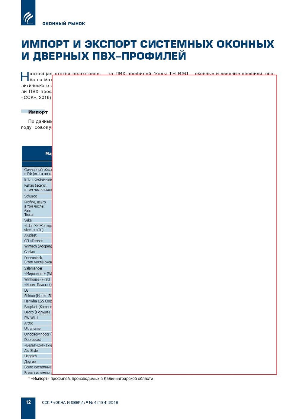 Импорт и экспорт системных оконных и дверных ПВХ-профилей
