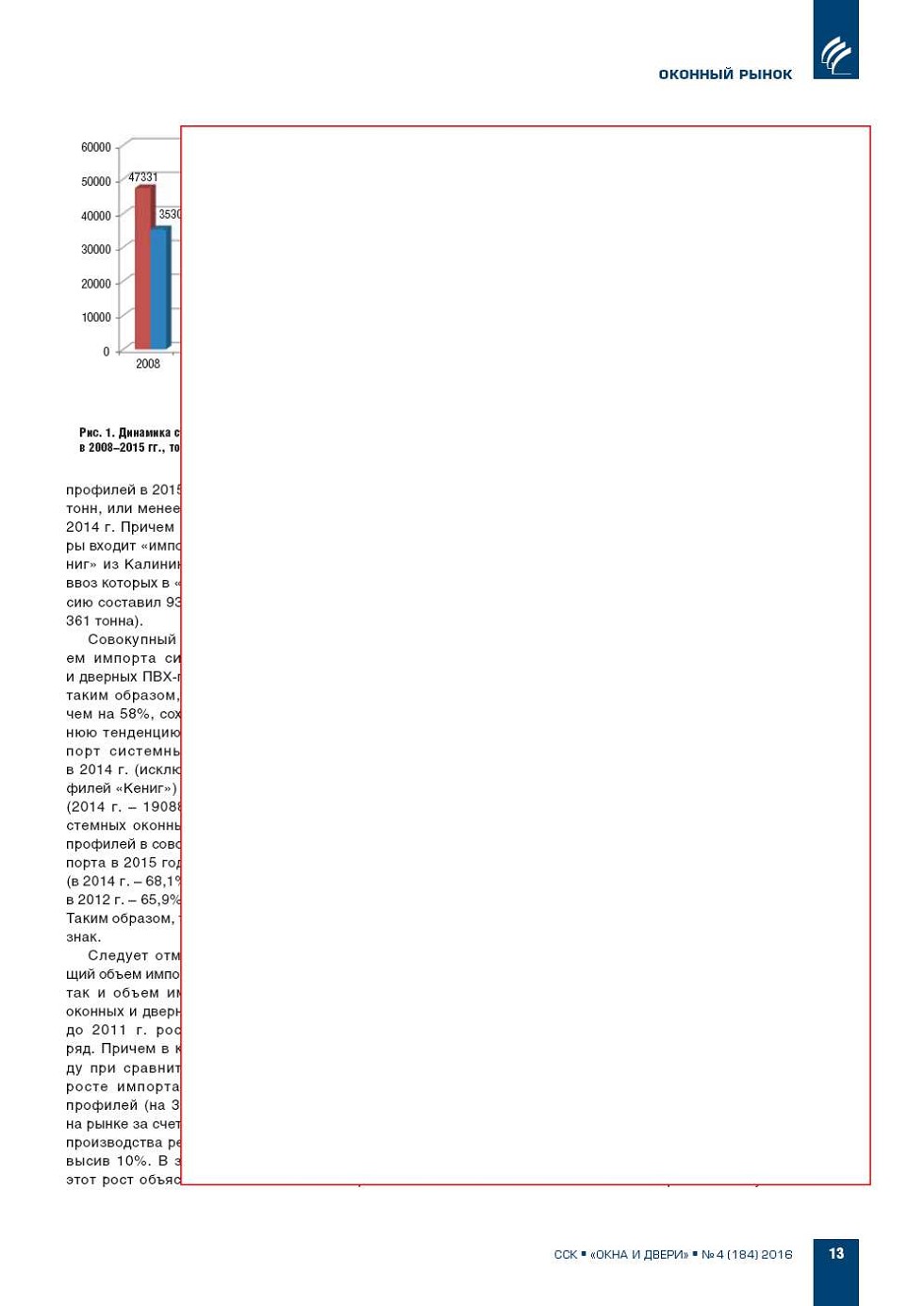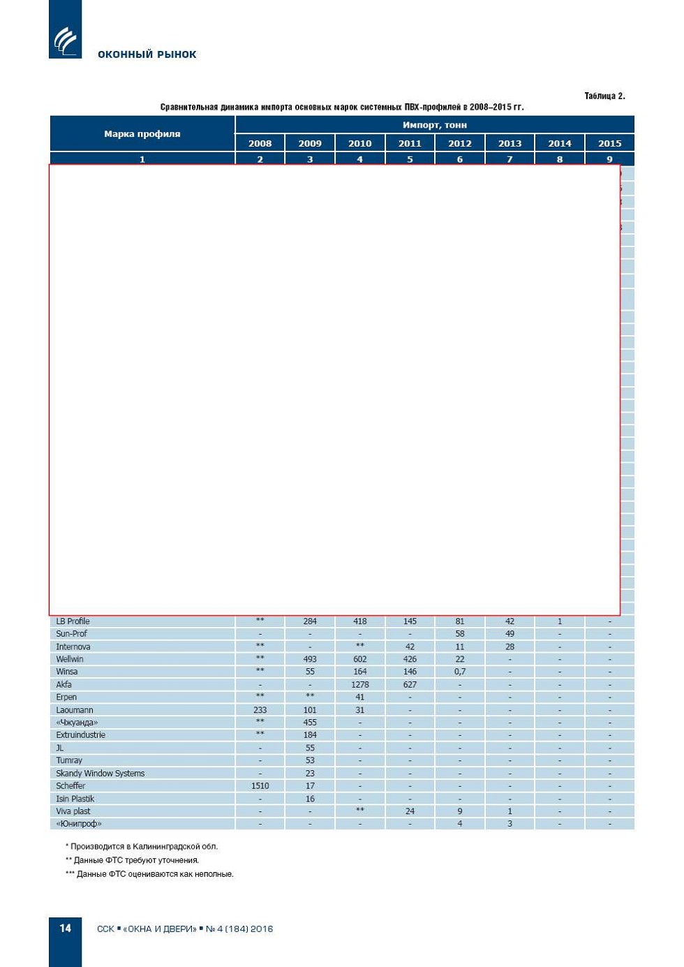 По итогам 2014-2015 гг. произошло резкое снижение совокупных объемов импорта и объем импорта системных оконных и дверных ПВХ-профилей, обусловленное сокращением внутреннего спроса. |
