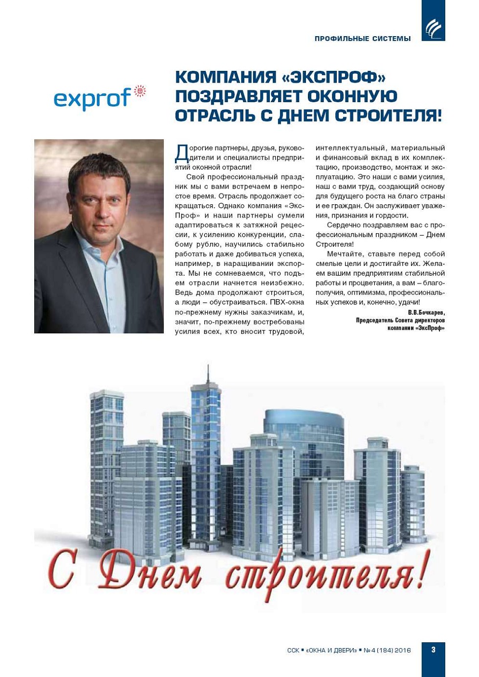 Компания «ЭксПроф» поздравляет оконную отрасль с днем строителя!