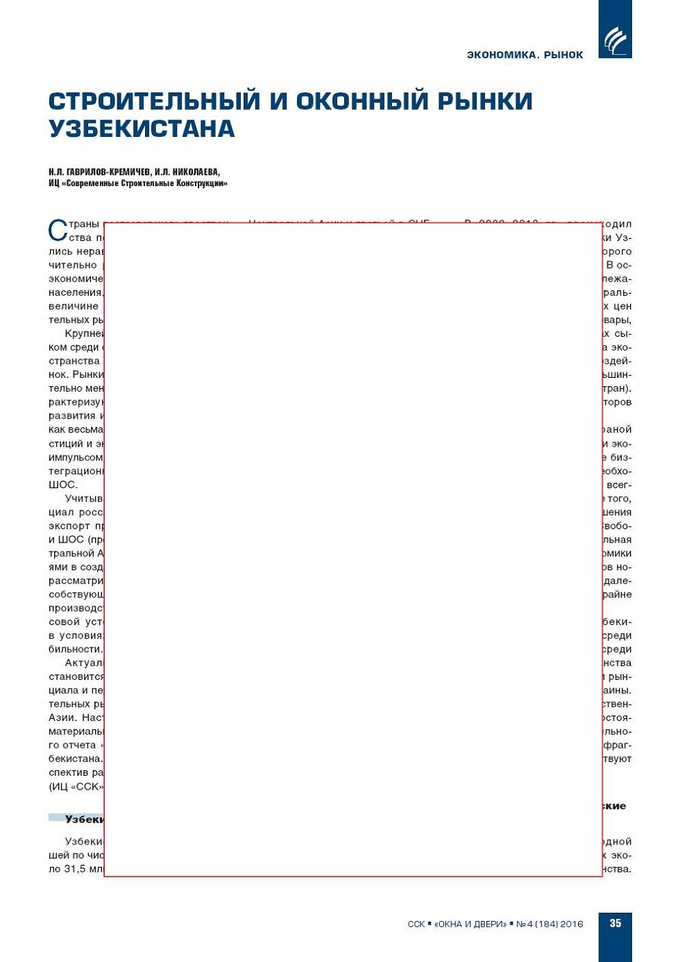 Н.Л. Гаврилов-Кремичев, И.Л. Николаева (ИЦ «ССК»). Строительный и оконный рынки Узбекистана