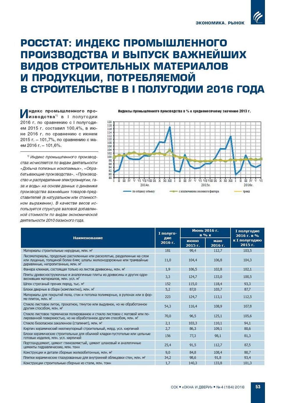 РОССТАТ: индекс промышленного производства и выпуск важнейших видов строительных материалов