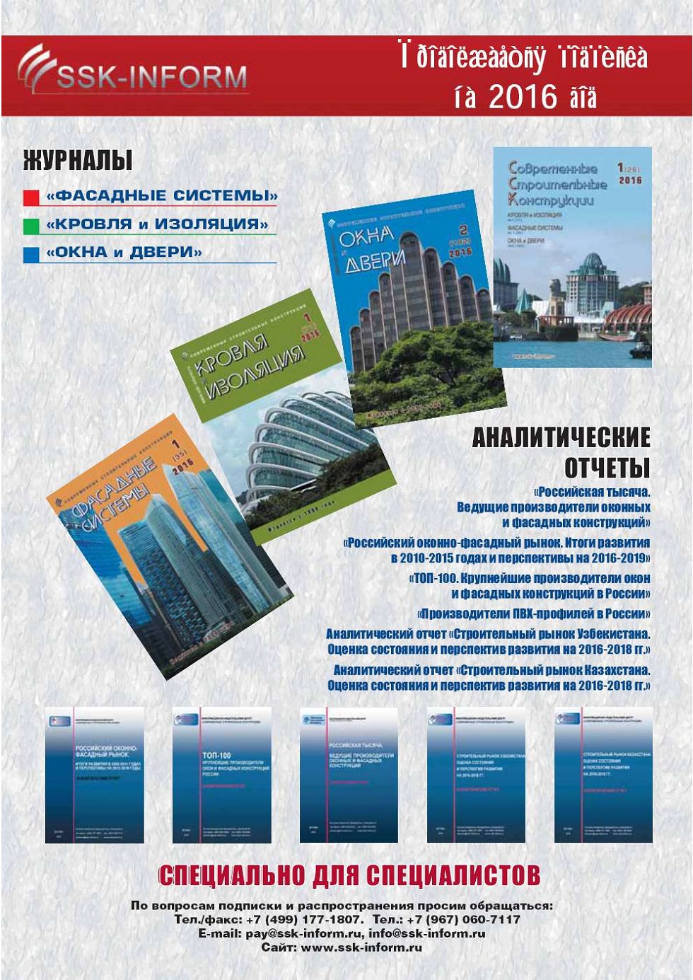 | Подписка на журналы «ОКНА и ДВЕРИ», «КРОВЛЯ и ИЗОЛЯЦИЯ», «ФАСАДНЫЕ СИСТЕМЫ» | ...56 |