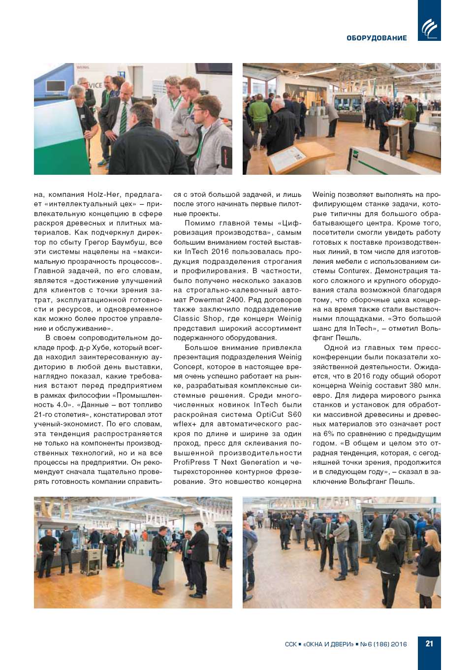 Традиционная фирменная выставка InTech концерна Weinig закончилась с хорошим результатом. Около 1000 клиентов из 32 стран приняли приглашение из Таубербишофсхайма, чтобы получить новейшую информацию и идеи для новых инвестиций. На площади более 4000 кв. |