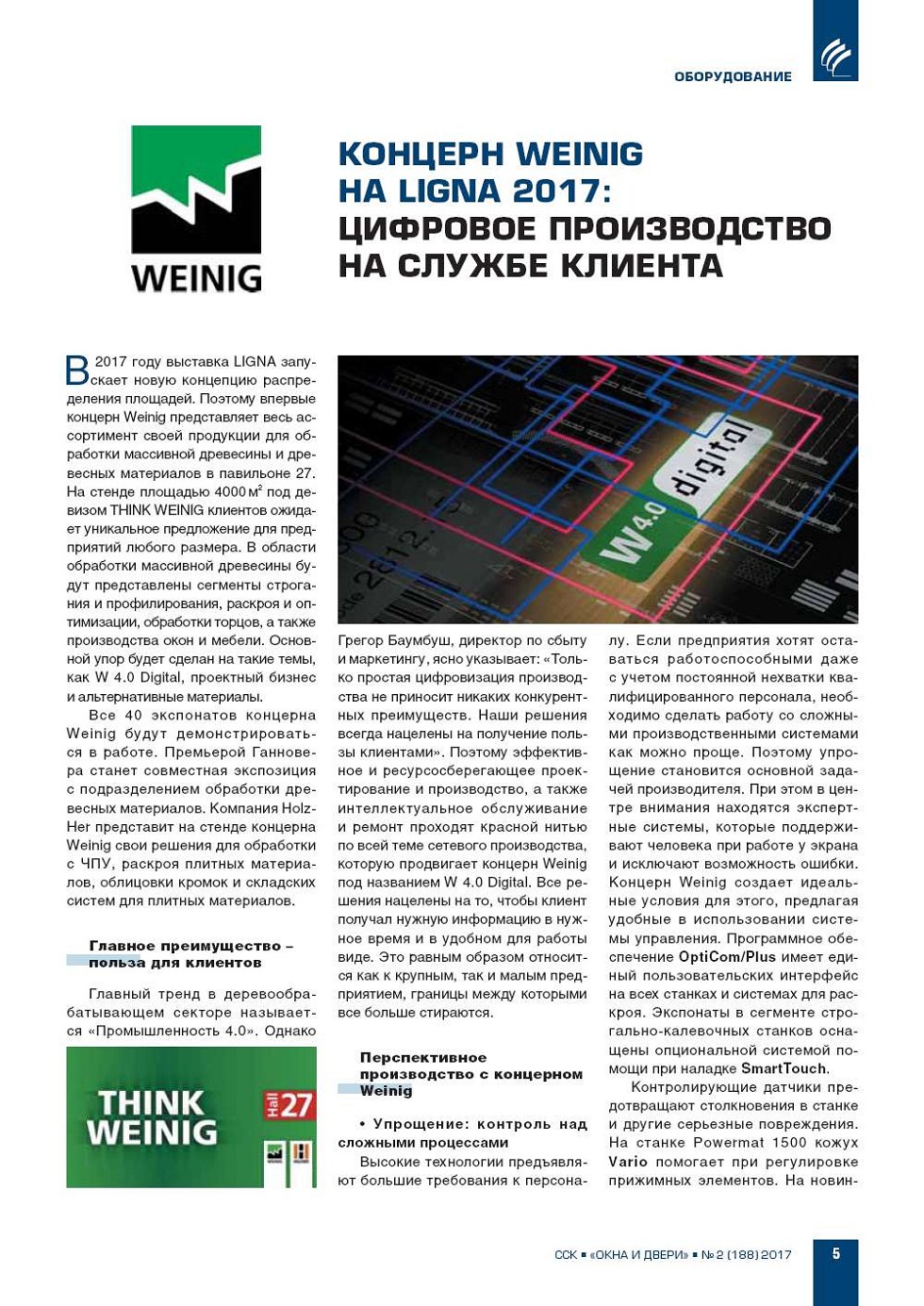 Концерн Weinig на LIGNA 2017: цифровое производство