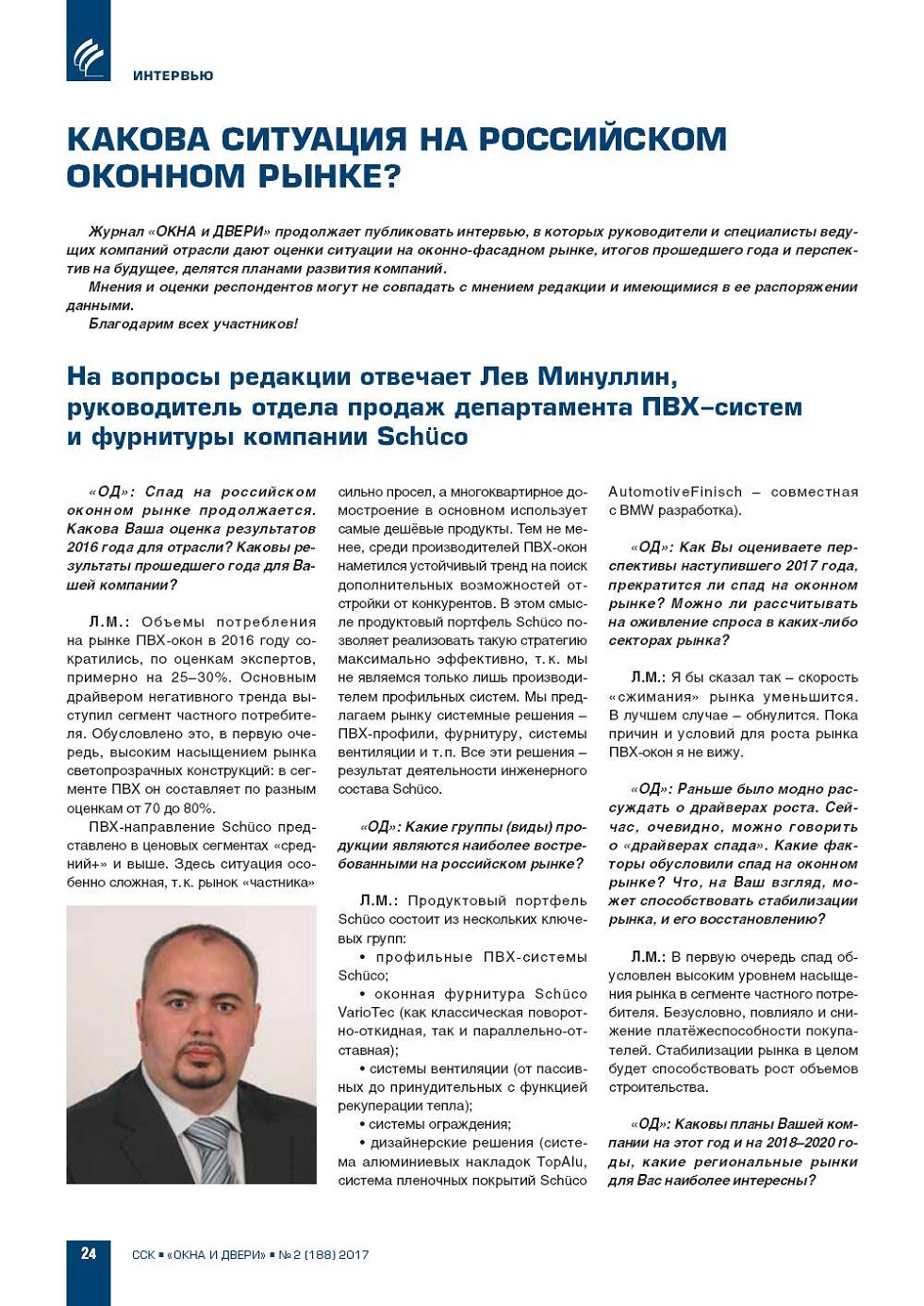 Журнал «ОКНА и ДВЕРИ» продолжает публиковать интервью, в которых руководители и специалисты ведущих компаний отрасли дают оценки ситуации на оконнофасадном рынке, итогов прошедшего года и перспектив на будущее, делятся планами развития компаний. Мнения... |