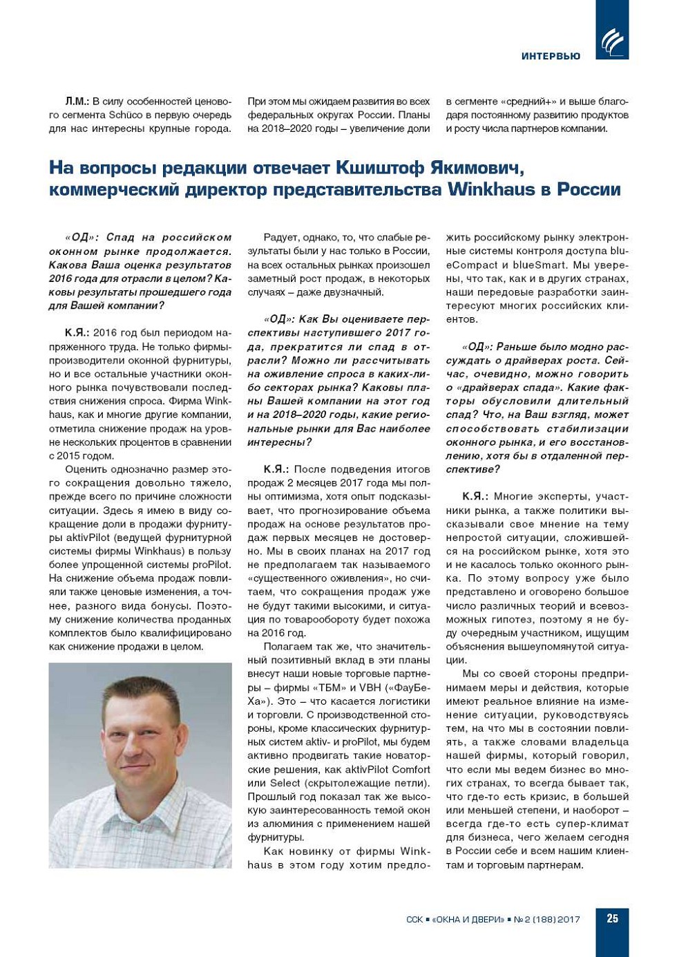 | На вопросы редакции отвечает Кшиштоф Якимович, коммерческий директор представительства Winkhaus в России | ...25 |