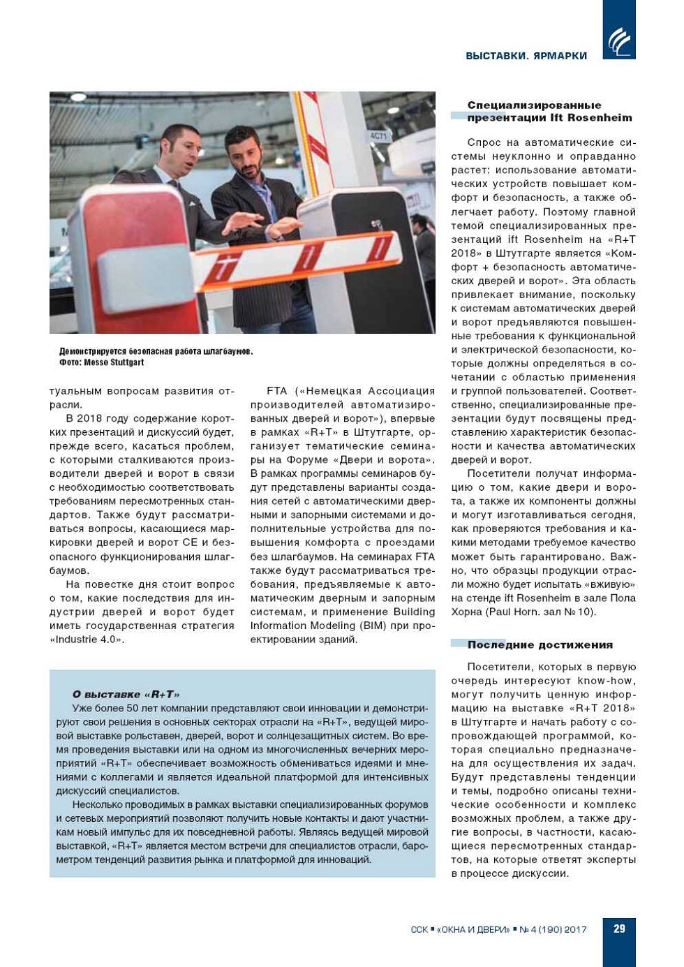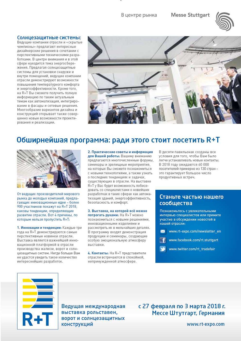 «R+T 2018» в Штутгарте: авторитетные партнеры и лучшие «ноу-хау»