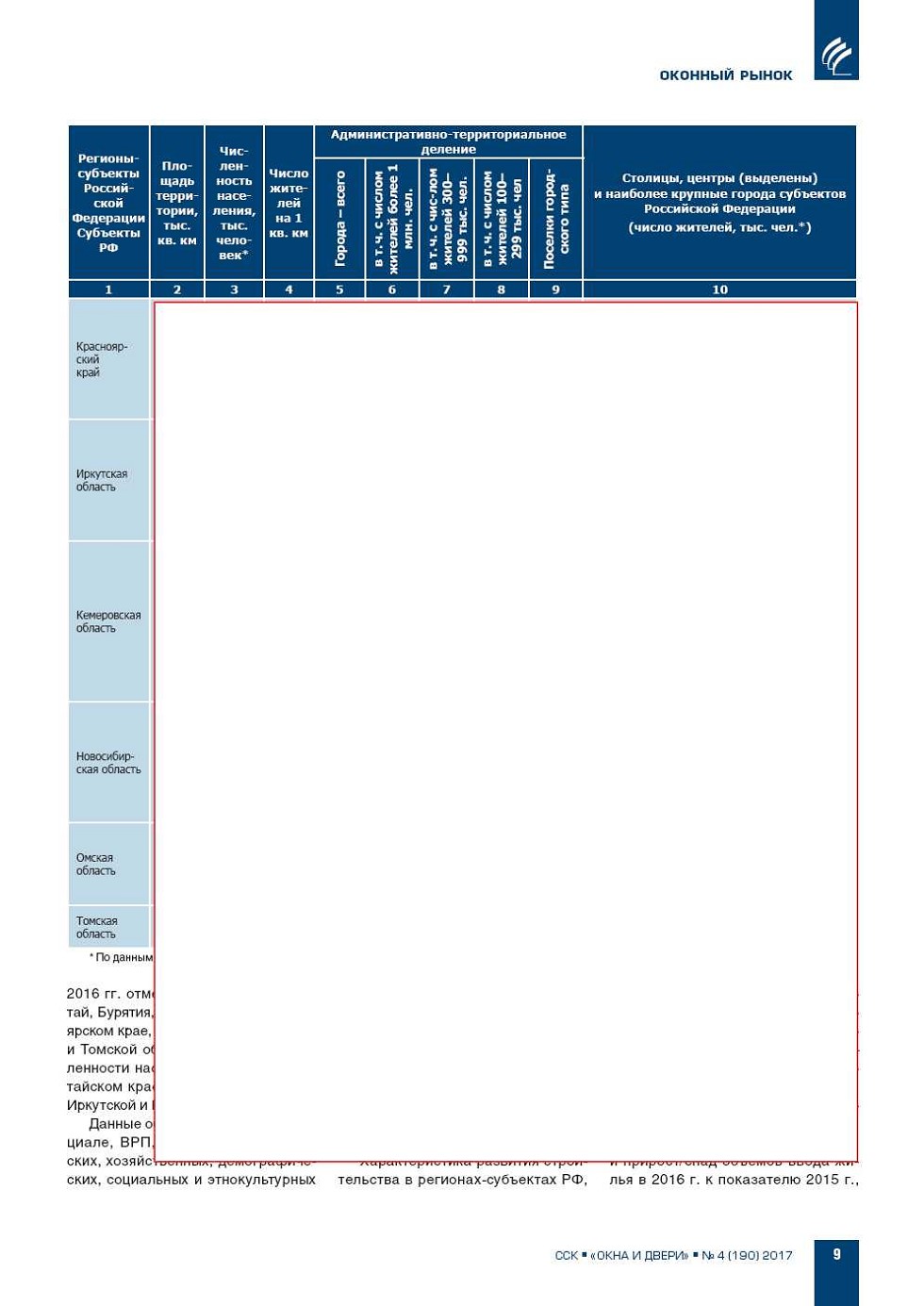 Настоящая статья, характеризующая состояние строительного и оконного рынков Сибирского федерального округа (СФО), подготовлена по материалам нового аналитического отчета «РОССИЙСКАЯ ТЫСЯЧА. |