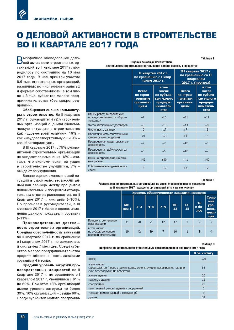 О деловой активности в строительстве во II квартале 2017 года