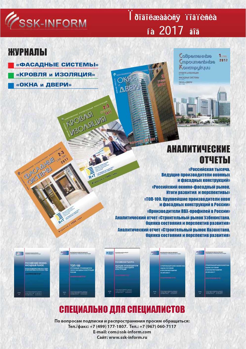 Отчет подготовлен компаниями ИЦ «Современные Строительные Конструкции» и «Агентство ССКИнформ» по результатам работ, выполненных в 2008–2017 гг. в рамках реализации совместного проекта «Мониторинг российского строительного рынка». |