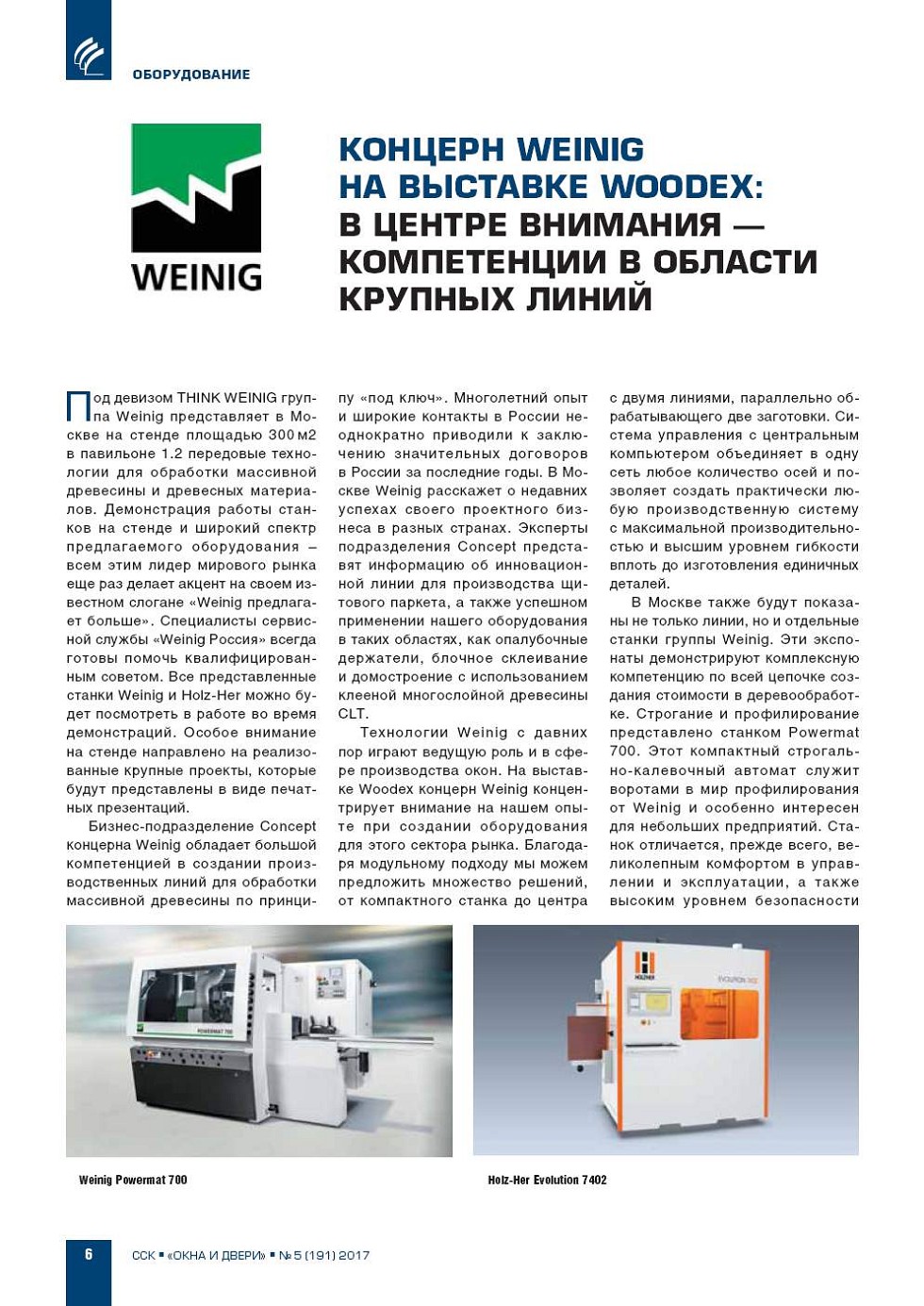 | Концерн Weinig: станки и установки для обработки массивной древесины и древесных материалов | ...5 |