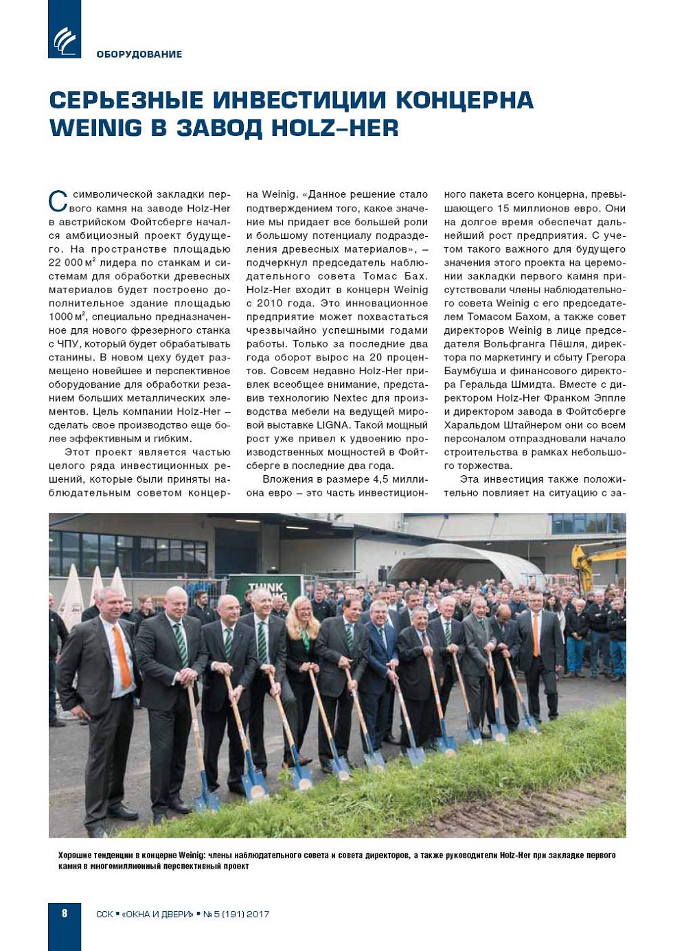 Серьезные инвестиции концерна Weinig в завод Holz-Her
