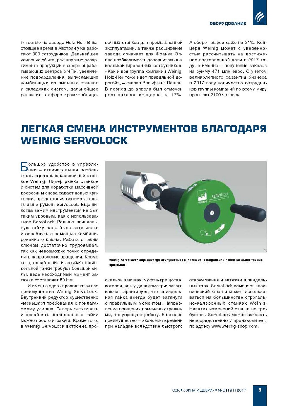 Большое удобство в управлении – отличительная особенность строгальнокалевочных станков Weinig. Лидер рынка станков и систем для обработки массивной древесины снова задает новые критерии, представляя вспомогательный инструмент ServoLock. Еще никогда зажим... |