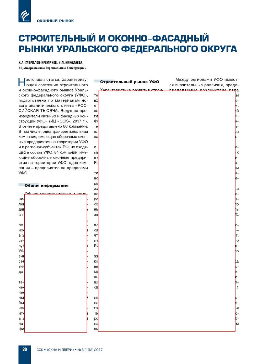 Настоящая статья, характеризующая состояние строительного и оконнофасадного рынков Уральского федерального округа (УФО), подготовлена по материалам нового аналитического отчета «РОССИЙСКАЯ ТЫСЯЧА. Ведущие производители оконных и фасадных конструкций УФО»... |