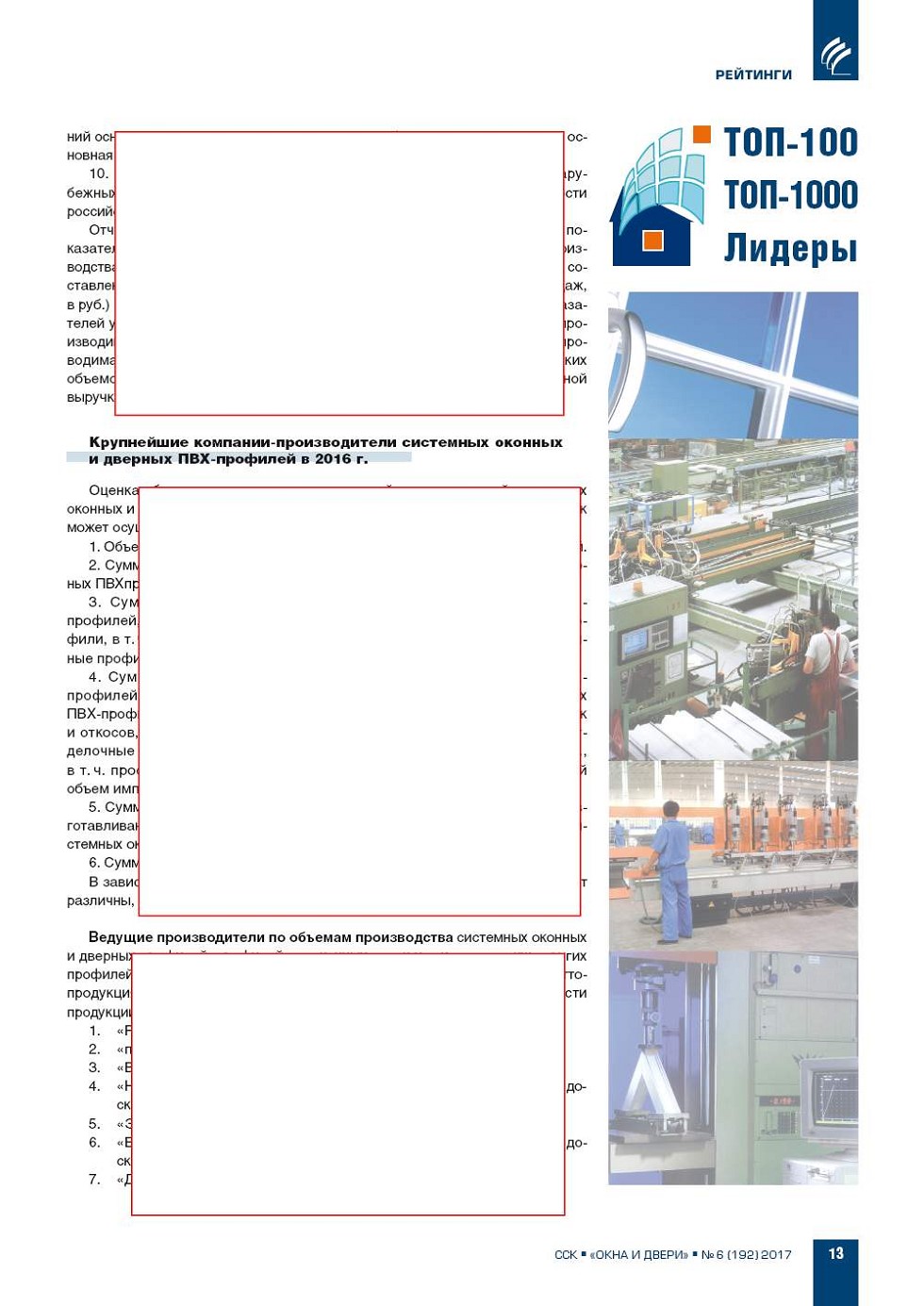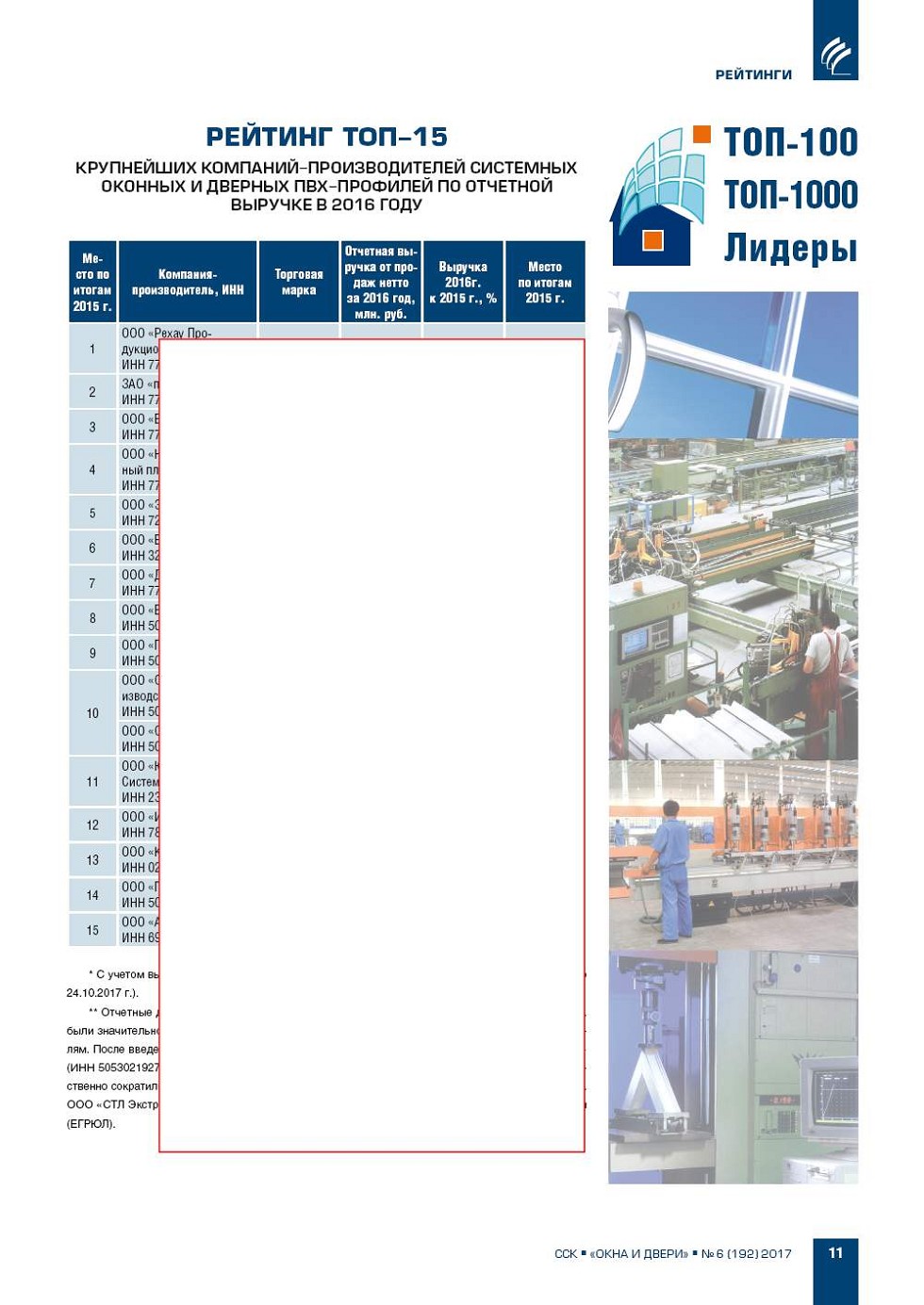 | Рейтинг ТОП-15 крупнейших компаний-производителей системных оконных и дверных ПВХ-профилей по отчетной выручке в 2016 году | ...11 |