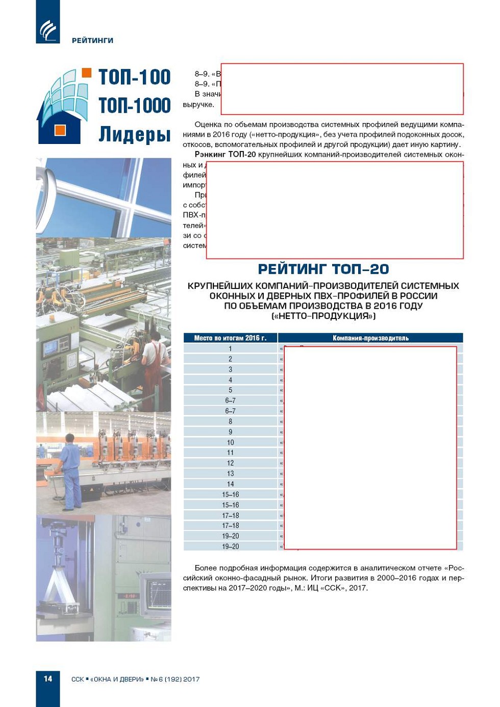 Рейтинг ТОП-20 крупнейших компаний-производителей системных оконных