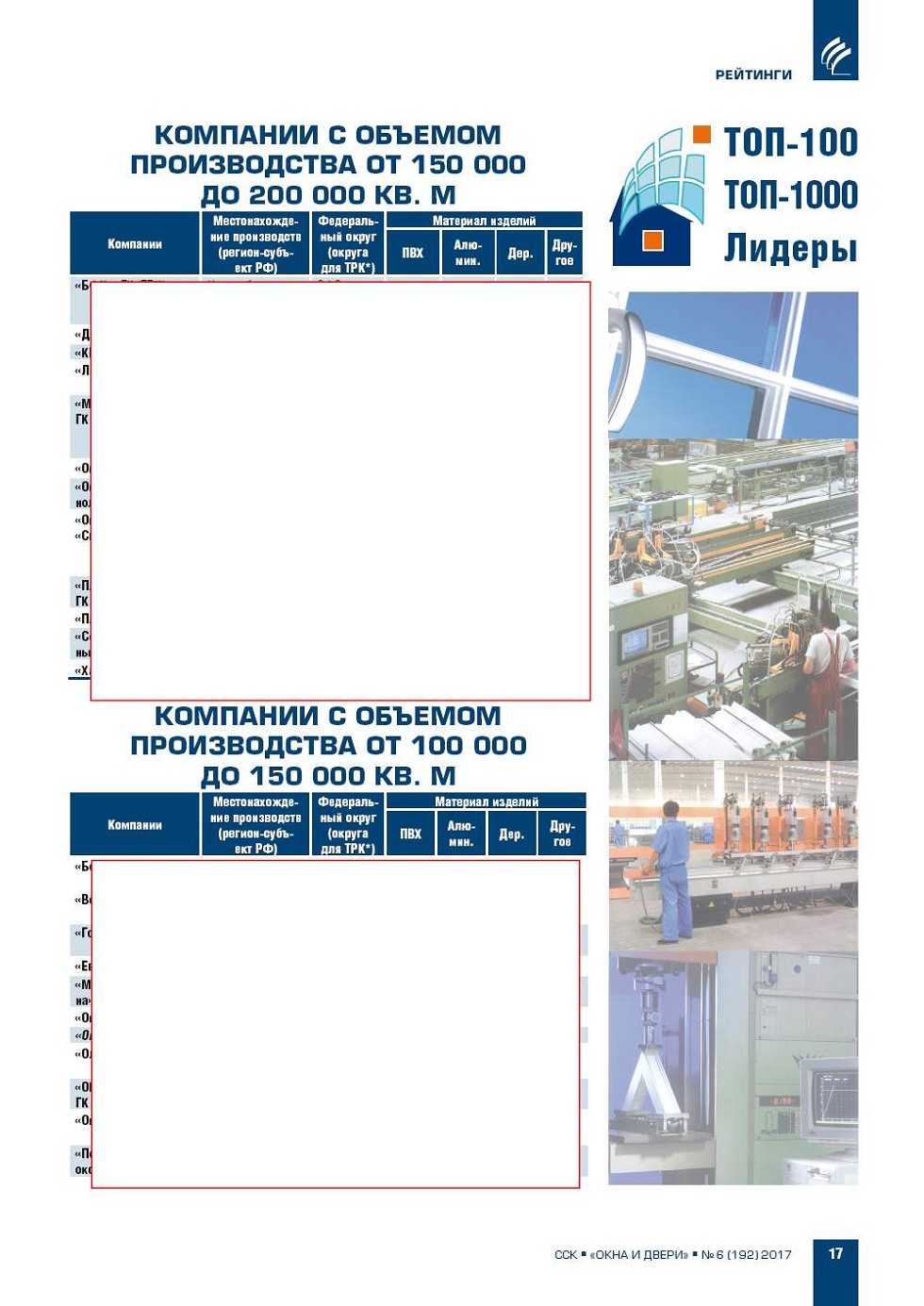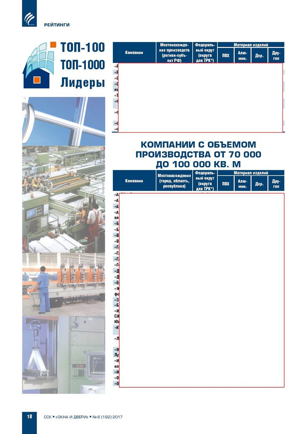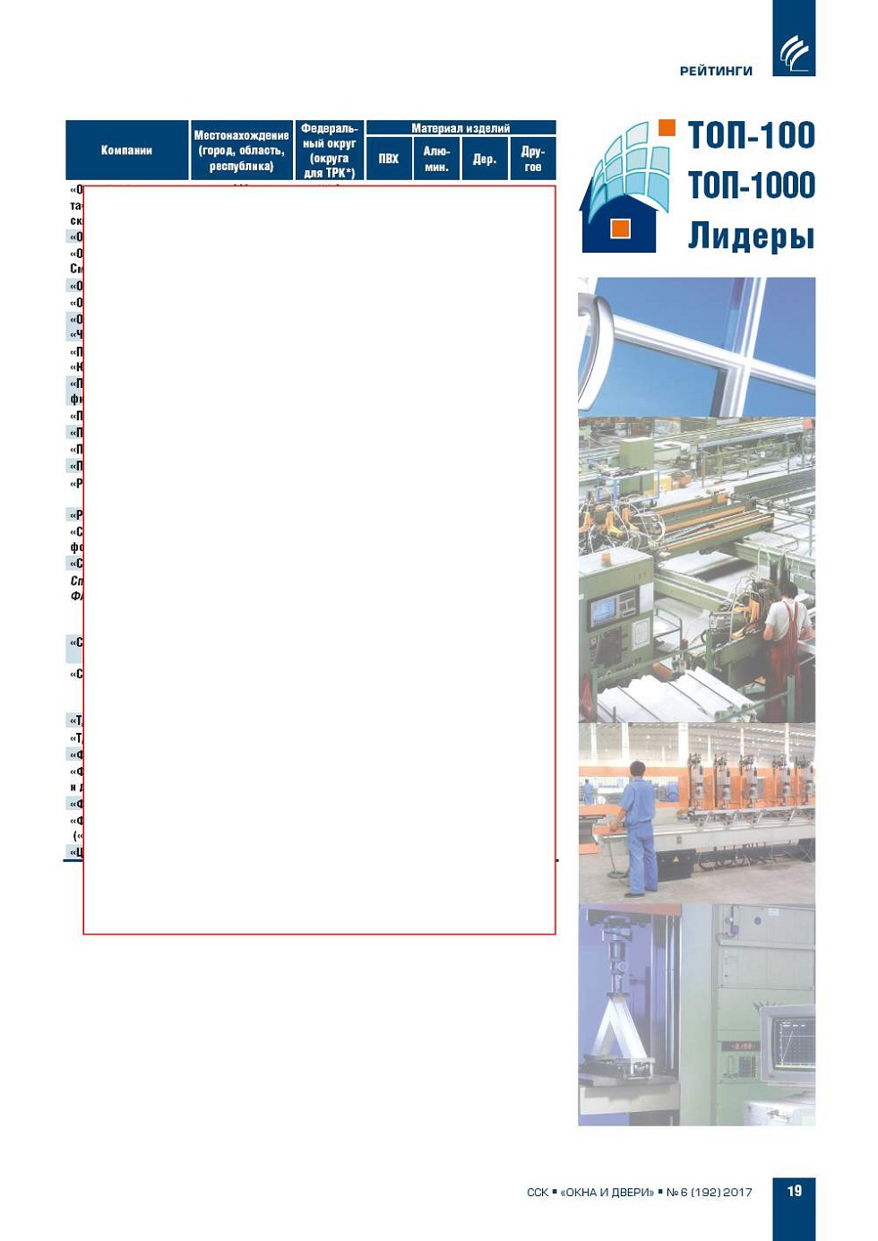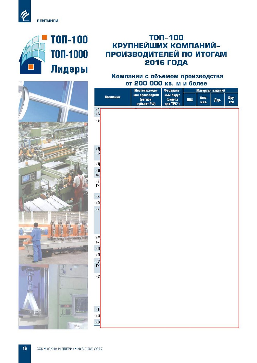 Рейтинг ТОП-100 крупнейших компаний-производителей оконных блоков