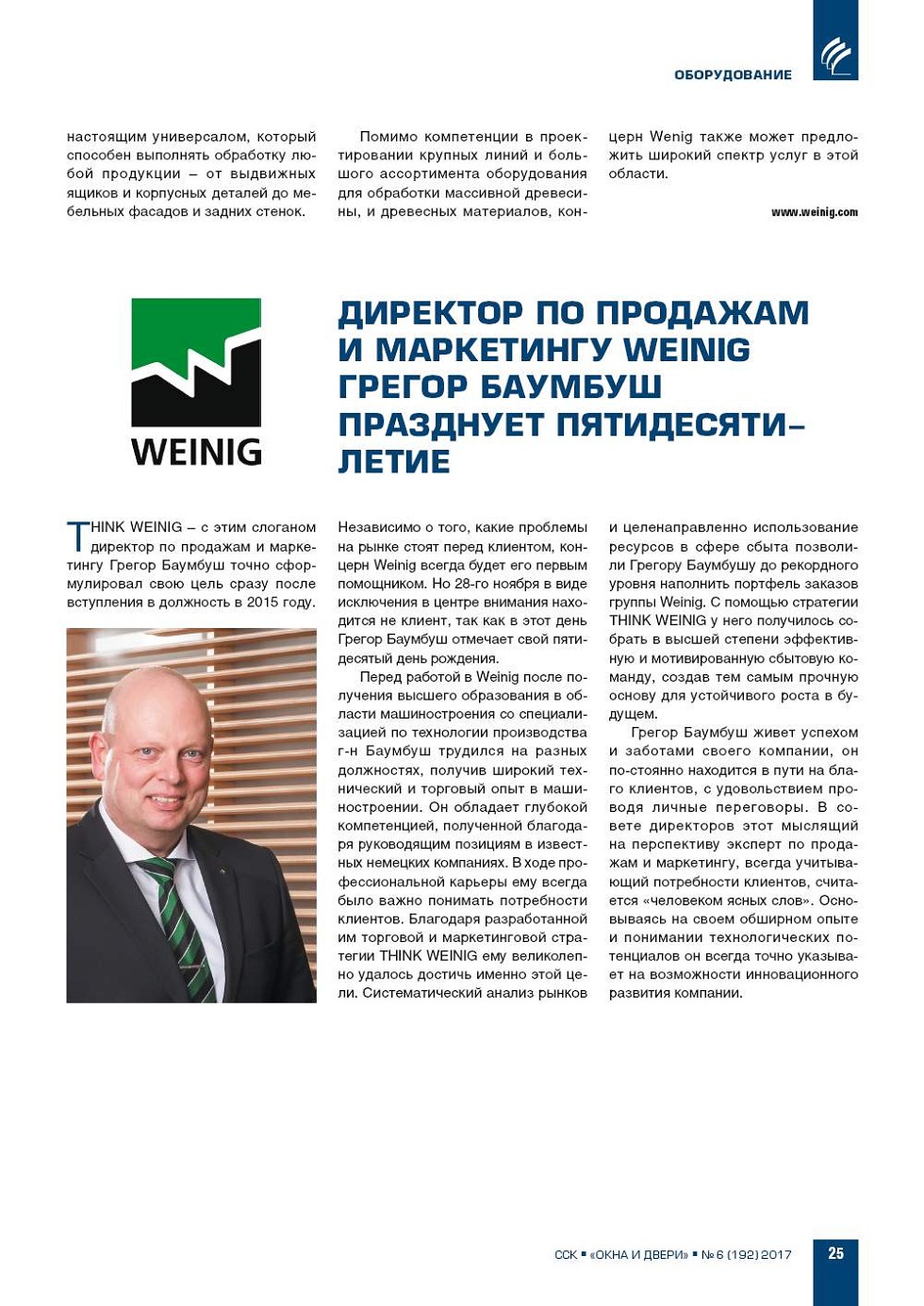 THINK WEINIG – с этим слоганом директор по продажам и маркетингу Грегор Баумбуш точно сформулировал свою цель сразу после вступления в должность в 2015 году. |