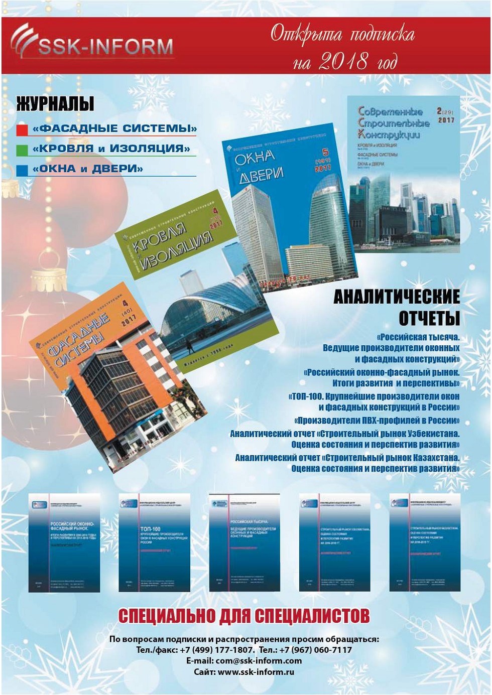 Отчет подготовлен компаниями ИЦ «Современные Строительные Конструкции» и «Агентство ССКИнформ» по результатам работ, выполненных в 2008–2017 гг. в рамках реализации совместного проекта «Мониторинг российского строительного рынка». |