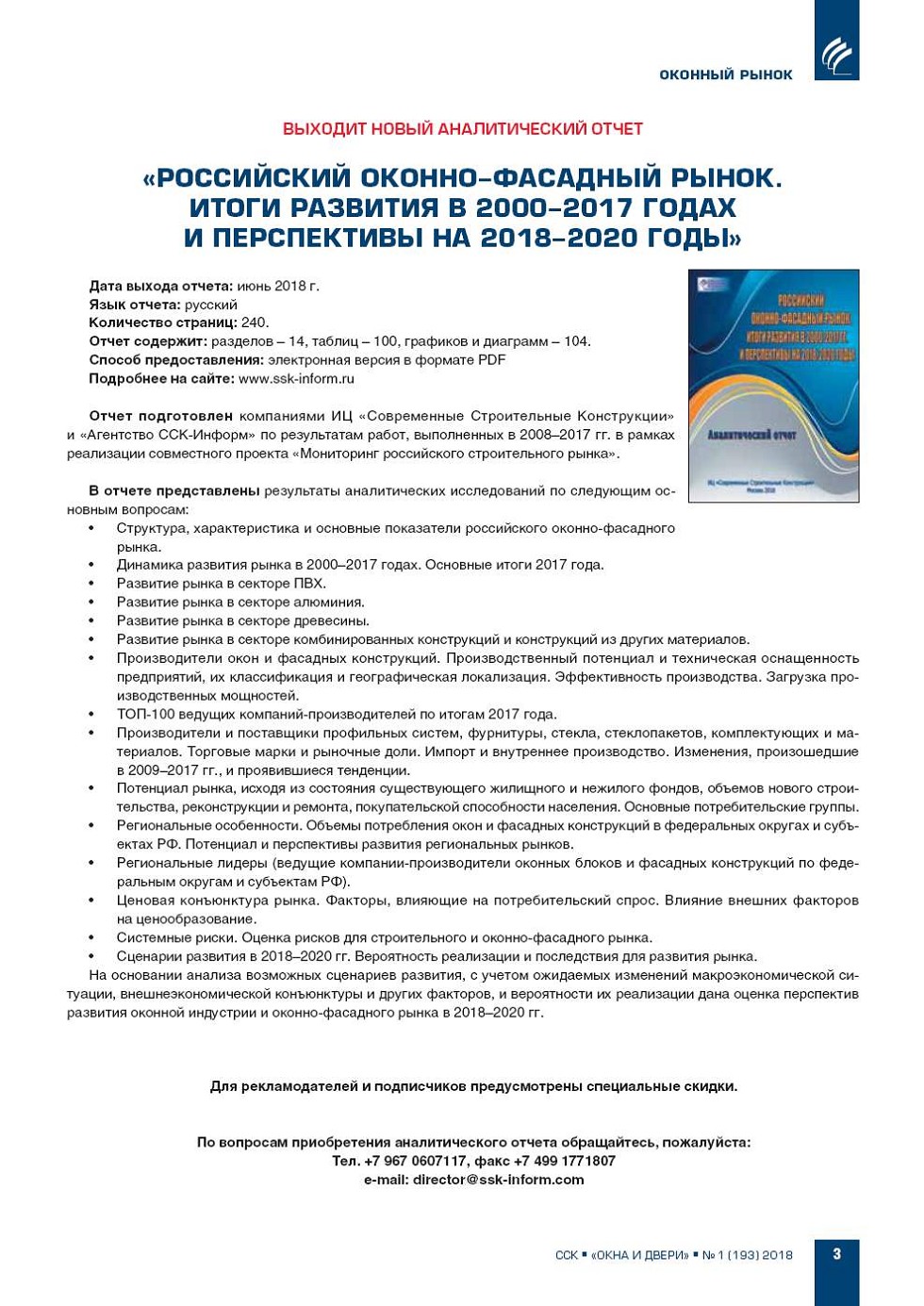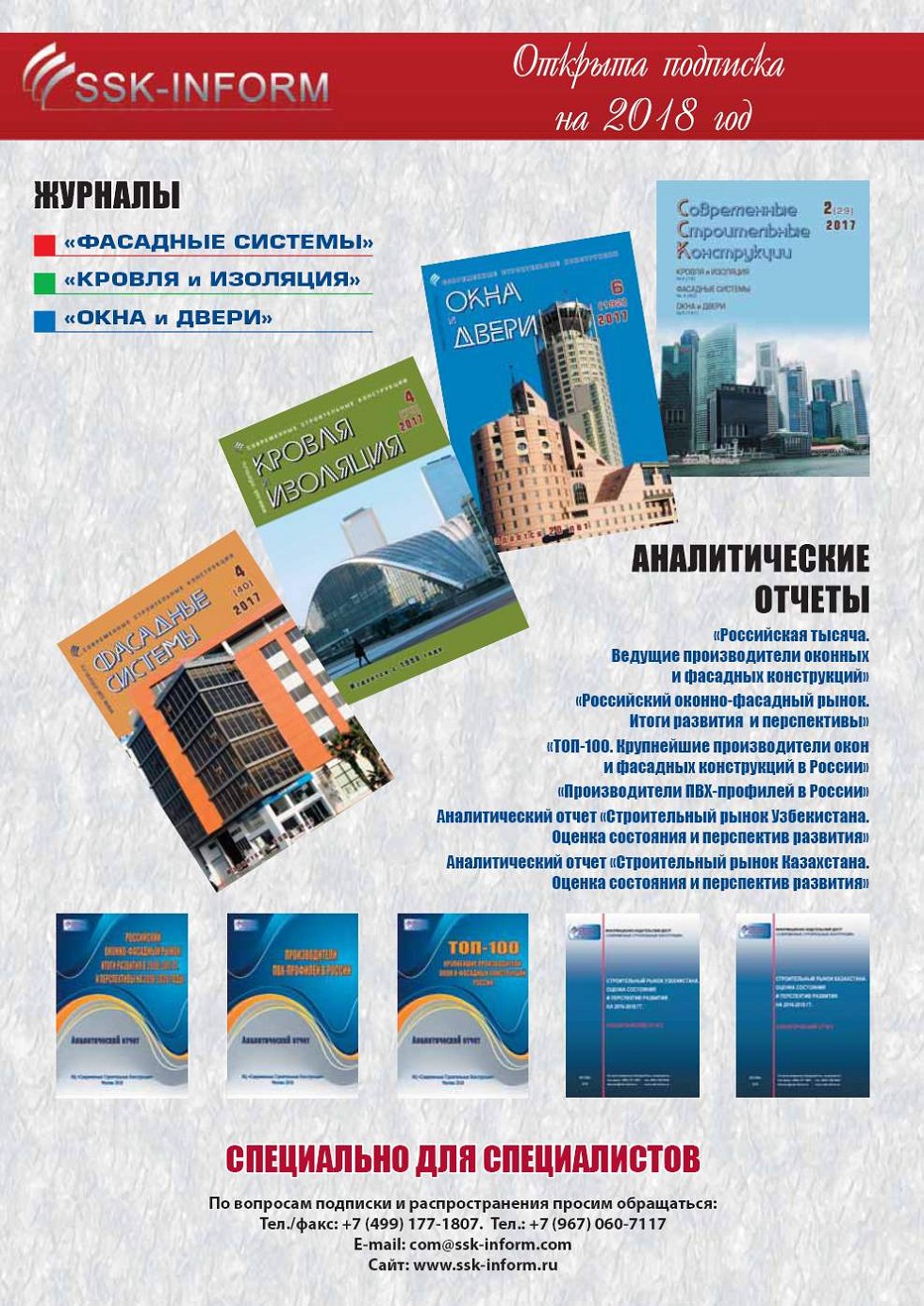 Отчет подготовлен компаниями ИЦ «Современные Строительные Конструкции» и «Агентство ССКИнформ» по результатам работ, выполненных в 2008–2017 гг. в рамках реализации совместного проекта «Мониторинг российского строительного рынка». |