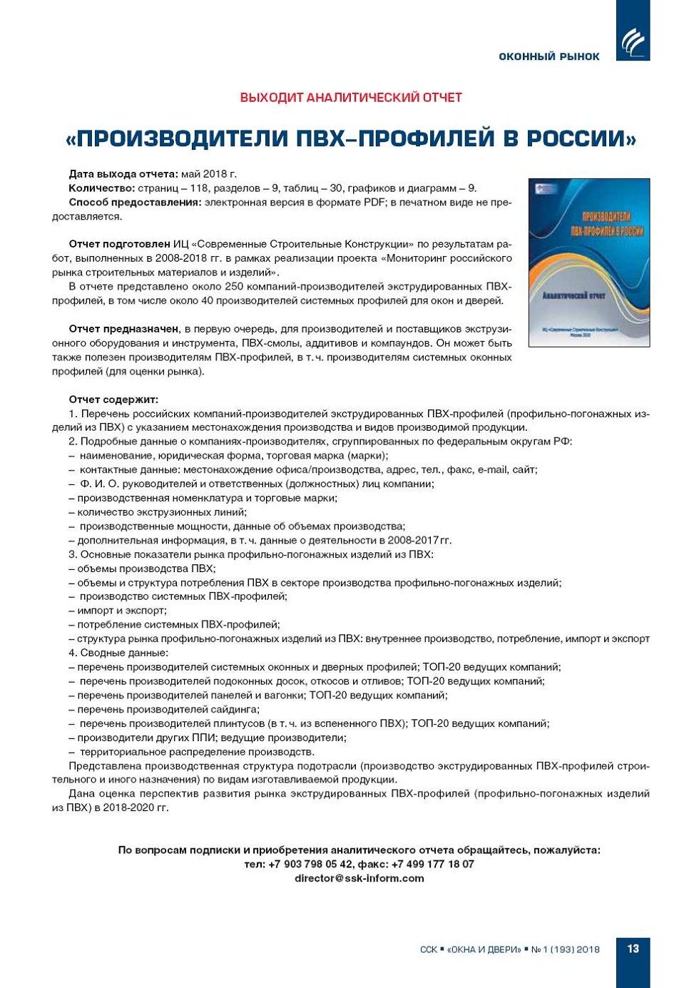 Новый аналитический отчет «Производители ПВХ-профилей в России»