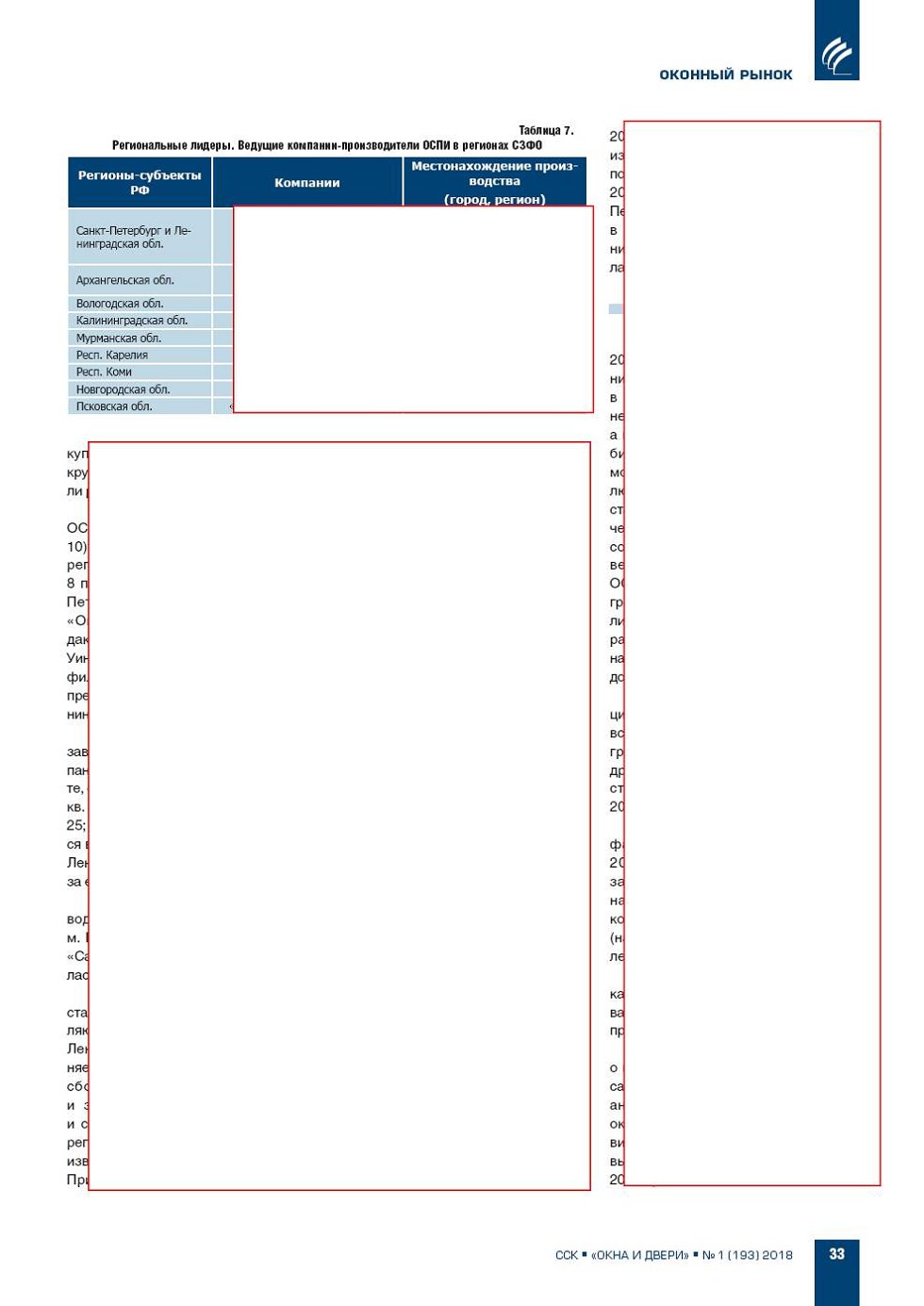 Настоящая статья, характеризующая состояние строительного и оконнофасадного рынков СевероЗападного федерального округа (СЗФО), подготовлена по материалам нового аналитического отчета «РОССИЙСКАЯ ТЫСЯЧА. Ведущие производители оконных и фасадных конструкций... |