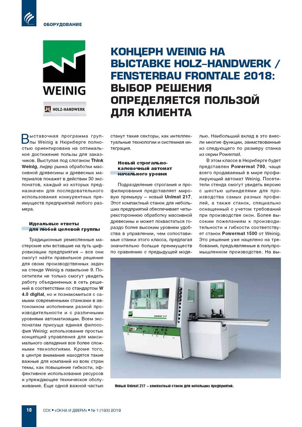Концерн Weinig на выставке Holz-Handwerk / Fensterbau frontale 2018: выбор