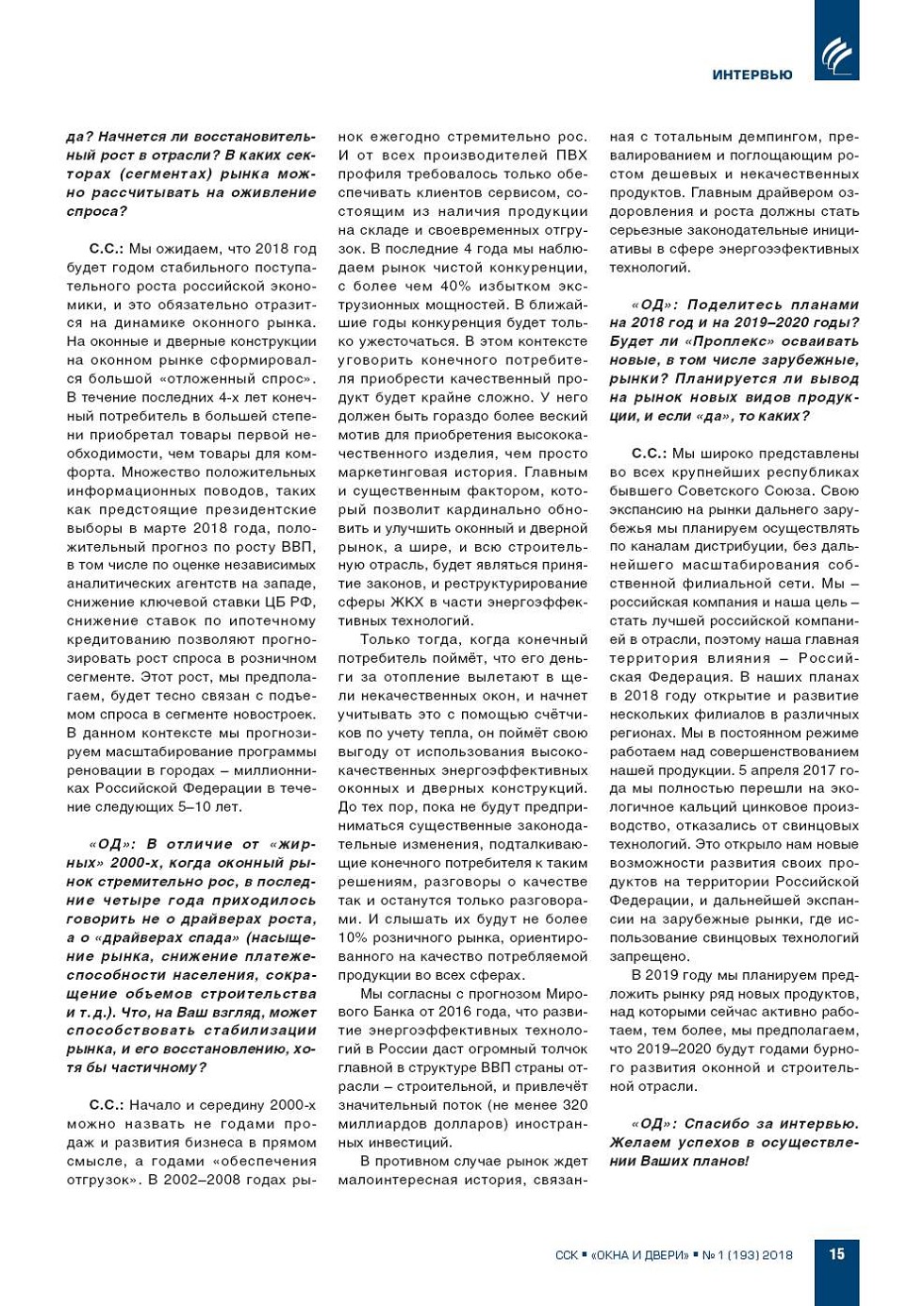 Как и в прошедшие годы, журнал «ОКНА и ДВЕРИ» в начале нового строительного сезона вновь публикует серию интервью с руководителями ведущих компаний, в которых дается оценка итогов прошедшего года, текущей ситуации, тенденций и перспектив развития оконного... |