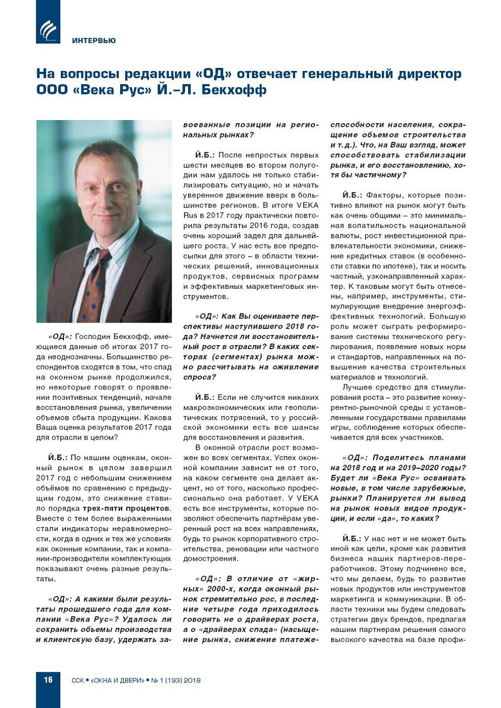 На вопросы редакции «ОД» отвечает генеральный директор ООО «Века Рус» Й.Л. Бекхофф |