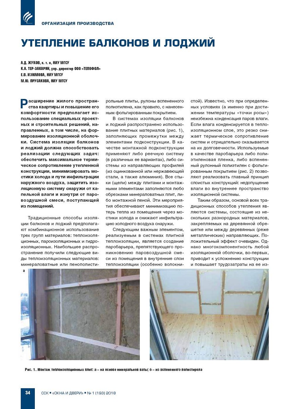 Е.В. Изюмова, НИУ МГСУ; М.Ю. Прусакова, НИУ МГСУ. Утепление балконов