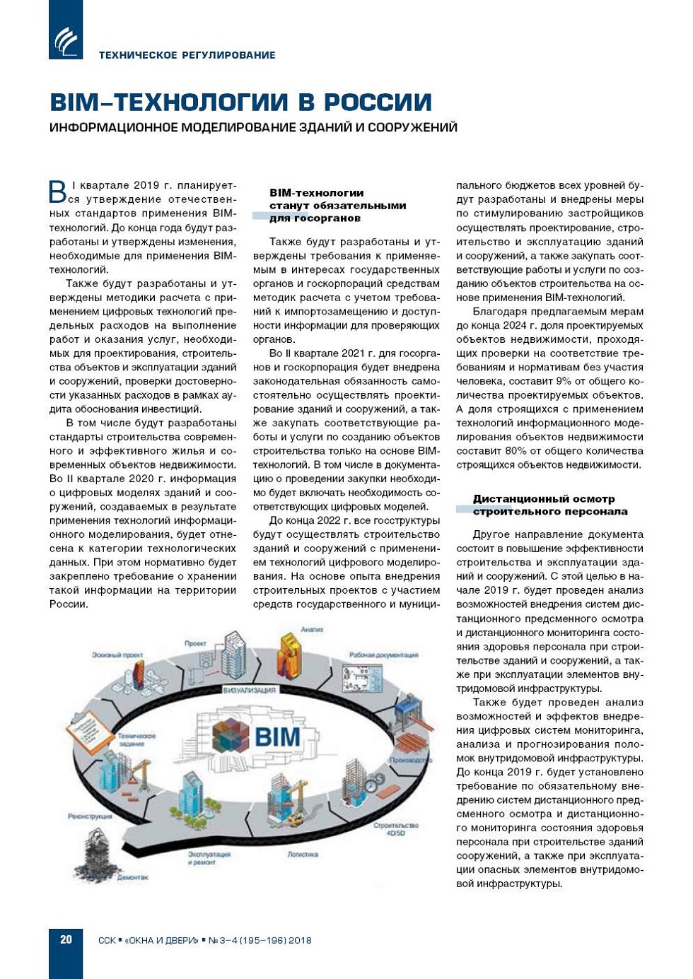 В I квартале 2019 г. планируется утверждение отечественных стандартов применения BIMтехнологий. До конца года будут разработаны и утверждены изменения, необходимые для применения BIMтехнологий. Также будут разработаны и утверждены методики расчета с применением... |