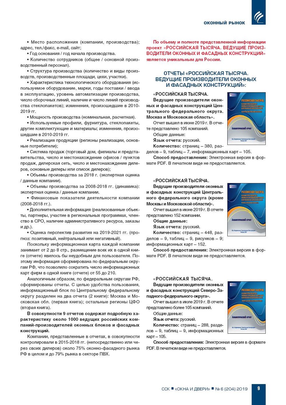 Новые аналитические отчеты «Российская тысяча. Ведущие производители оконных и фасадных конструкций»